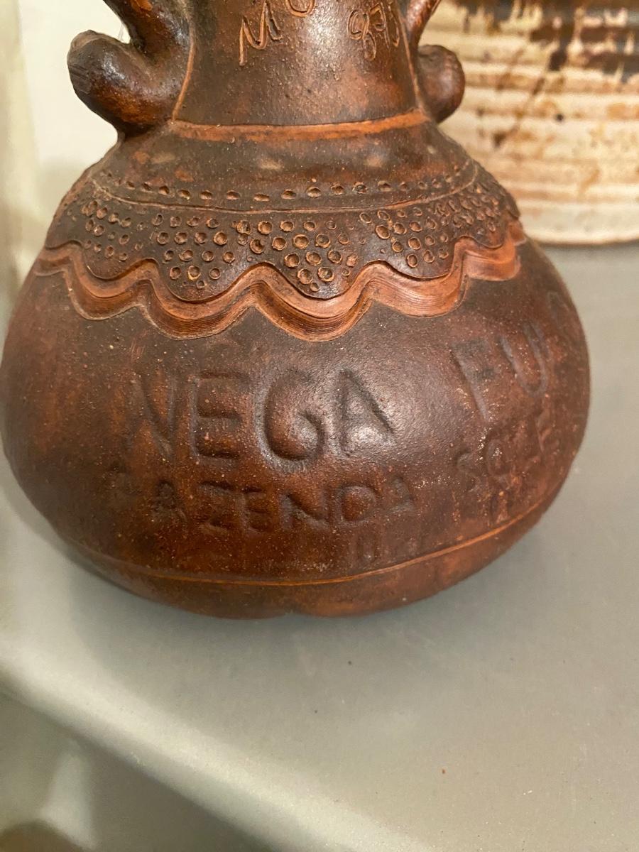VINTAGE Rare Nega Fulo Terracotta Clay Pottery Liquor Bottle From Brazil**Very cool and unusual Nega Fulo Brasil Terracotta Liquor Bottle From Brazil. 7x6