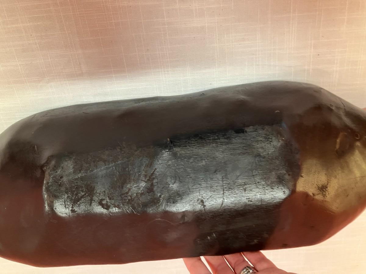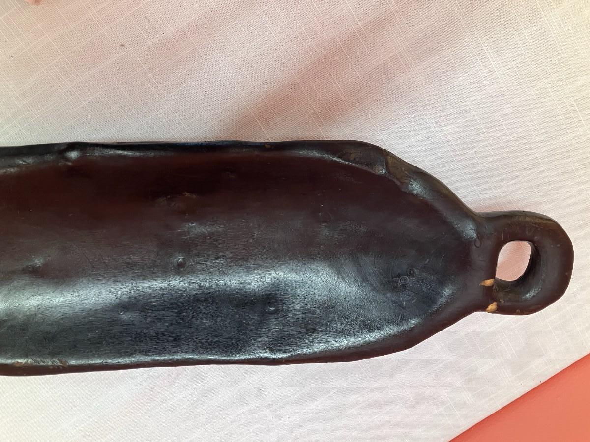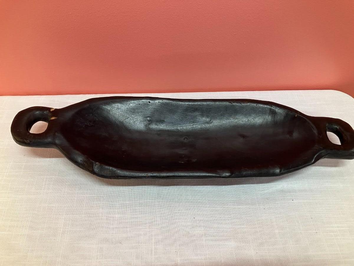 Vintage hand carved black wood bread tray, 23" long