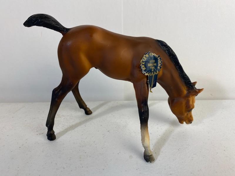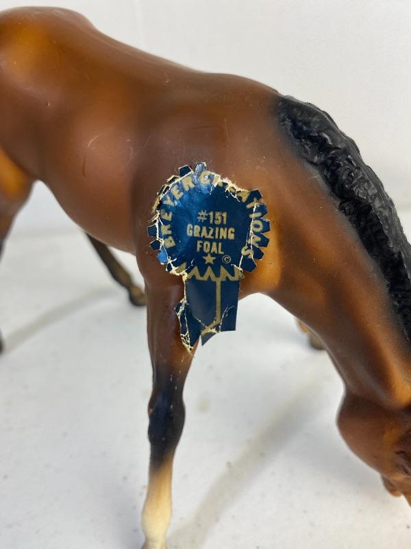 No longer available.-Vintage Breyer Grazing Foal #151 Mold Partial Original Blue Ribbon Sticker
