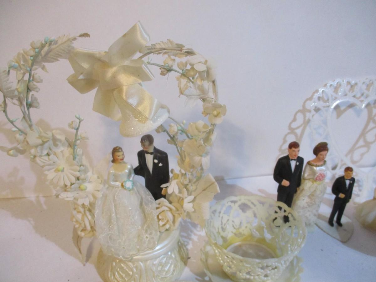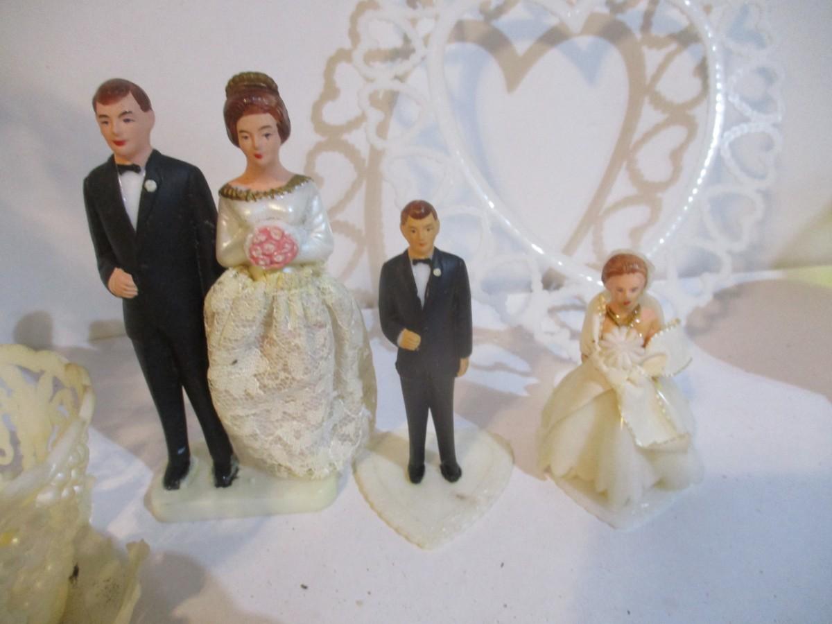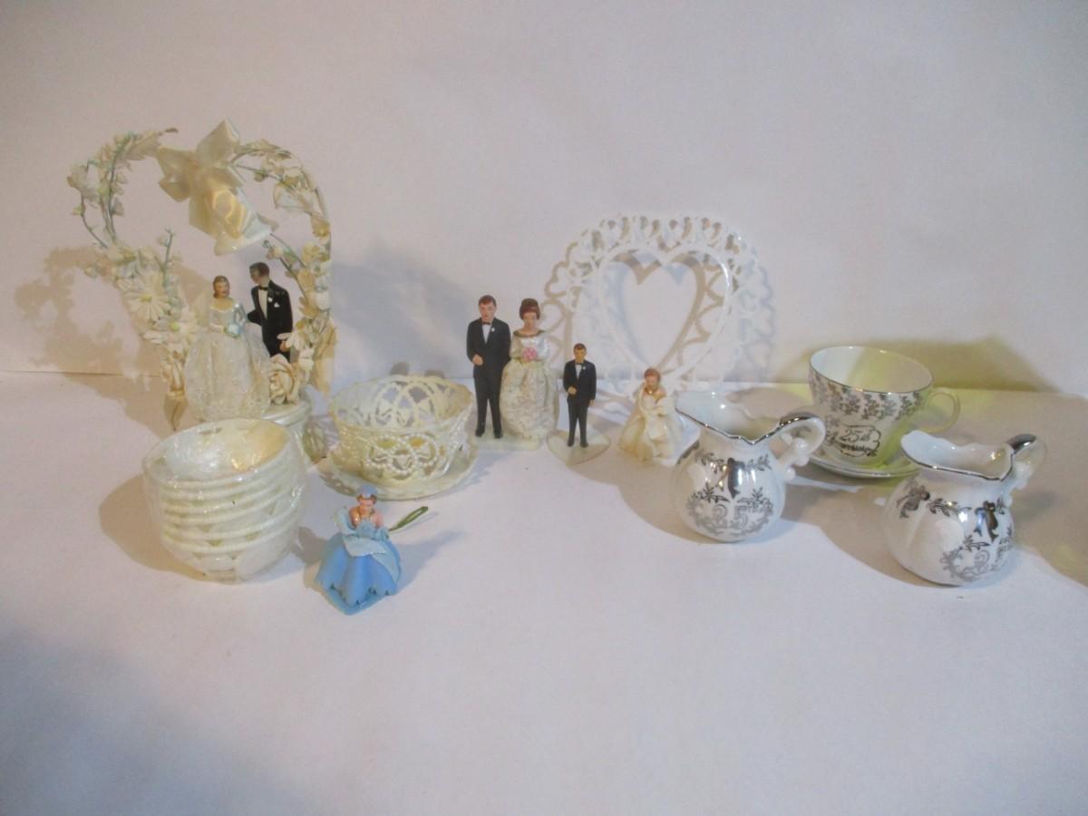 Vintage Bride & Groom Wedding Cake Toppers & Vintage Lefton China 25th Silver Anniversary Set