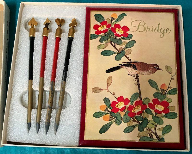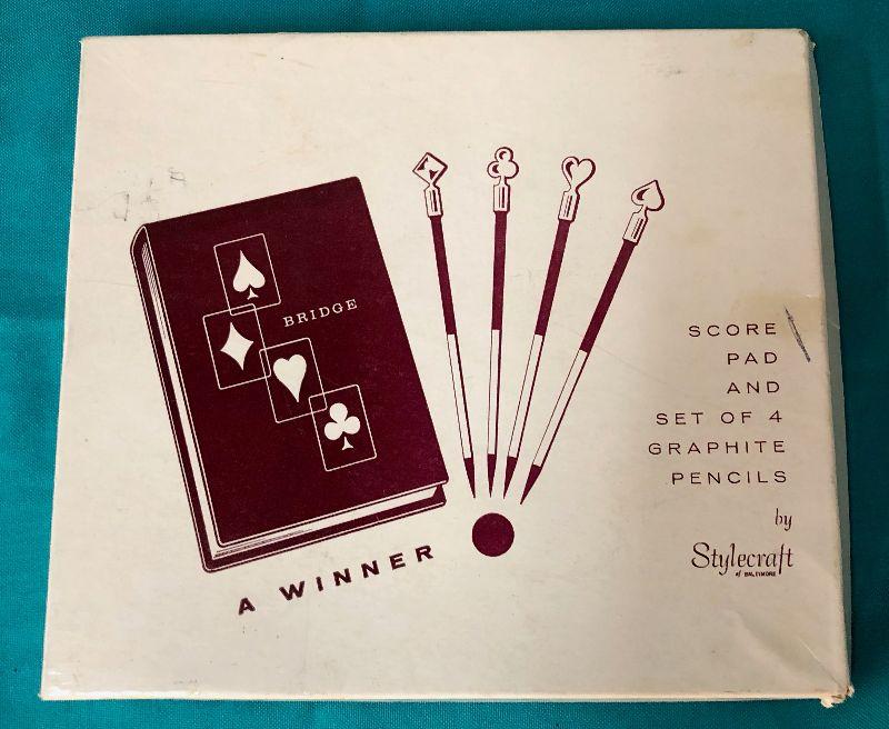 From Stylecraft here is a Bridge Score Pad and pencil Set..in the original box...some wear with age...
