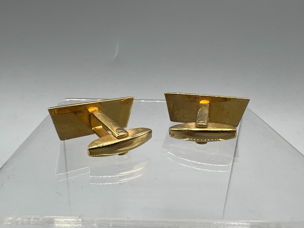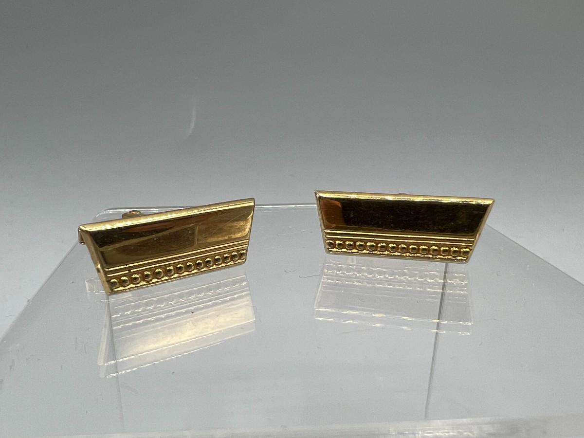 Pair of vintage bright gold tone metal cuff links. Unbranded. Good condition.
