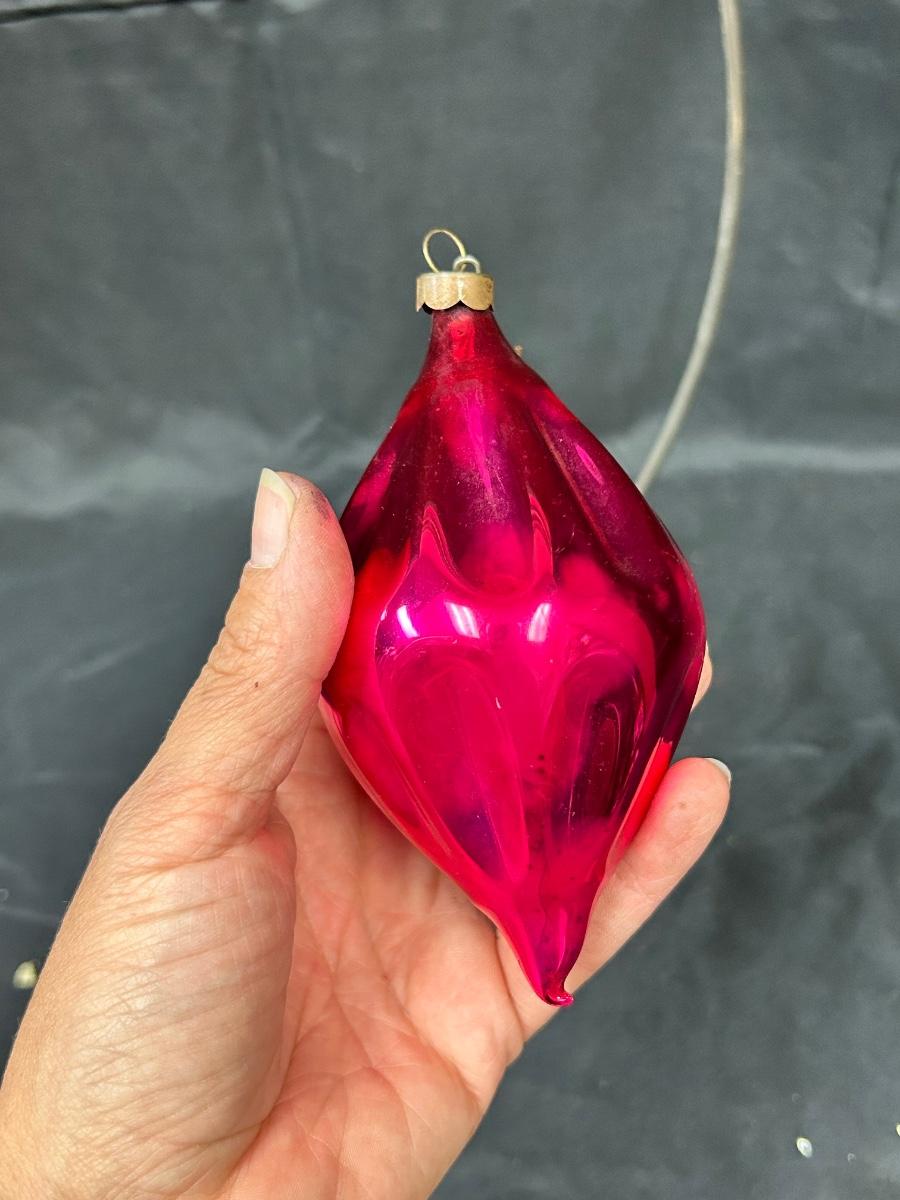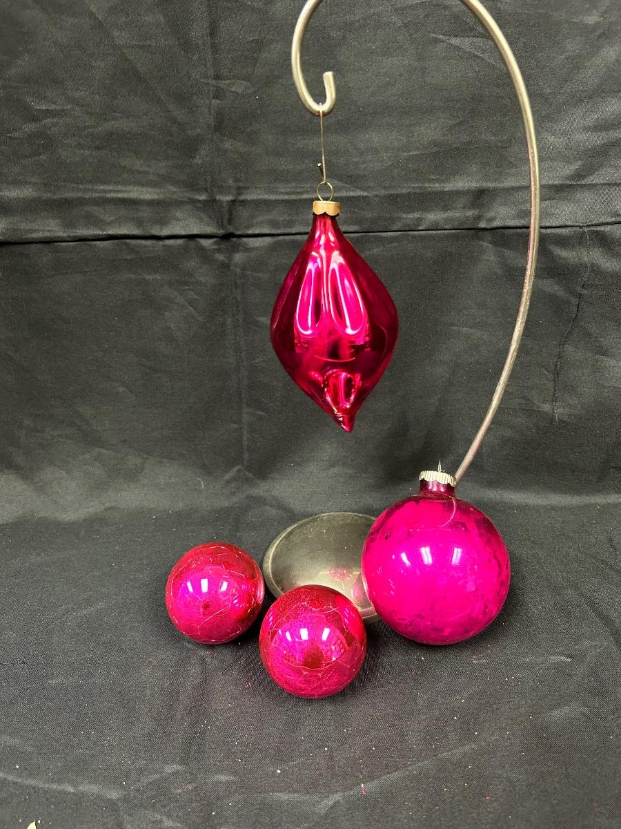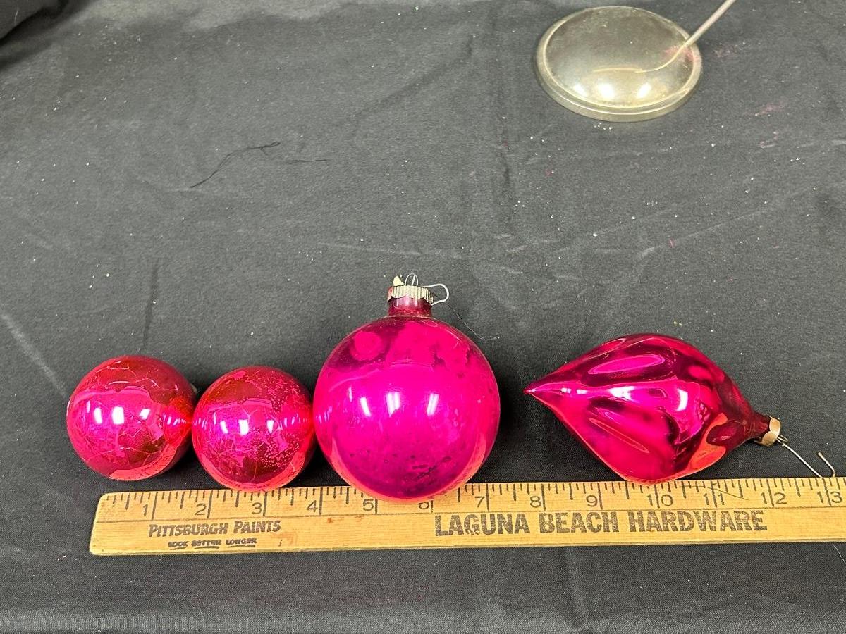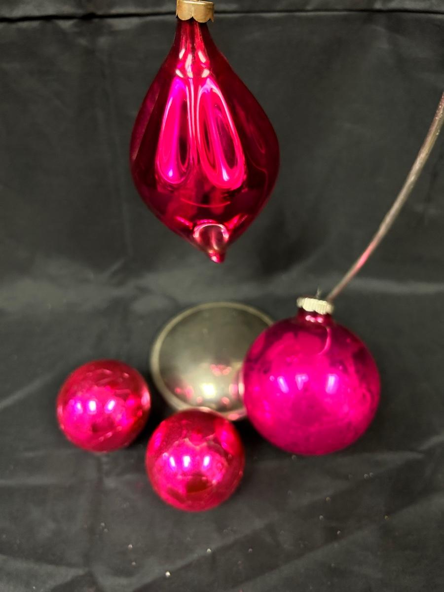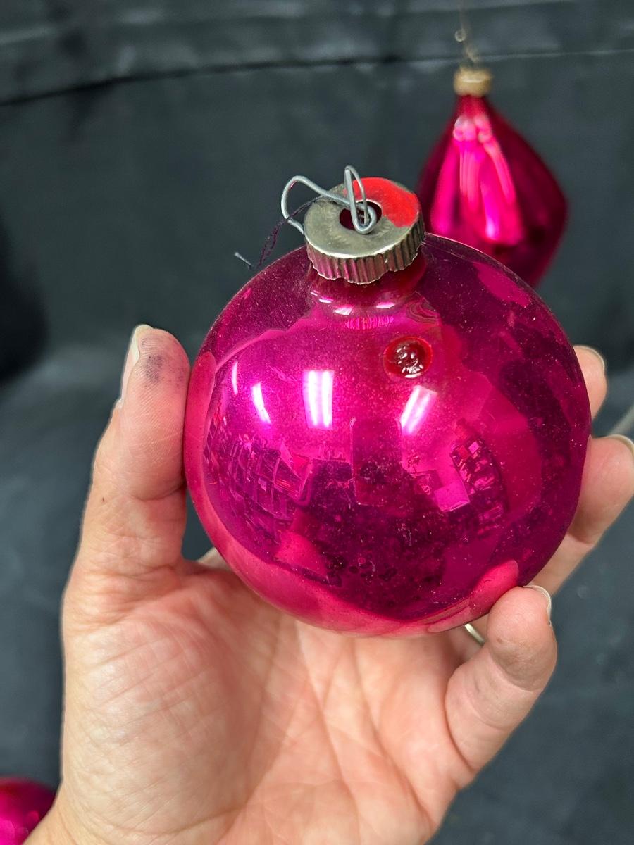 Vintage Bright Pink Blown Glass Christmas Holiday Tree Ornaments. In good vintage condition, light wear from age no cracks.