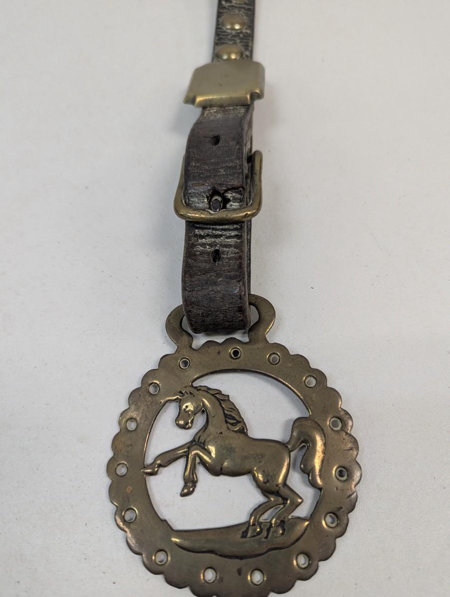 Vintage British Horse Guard 1 Brass Medals On Leather Strap