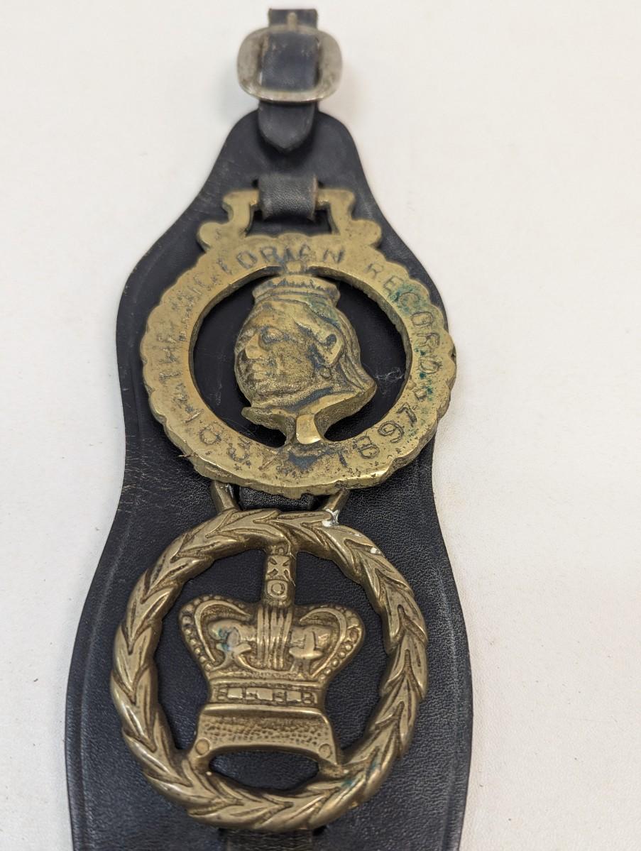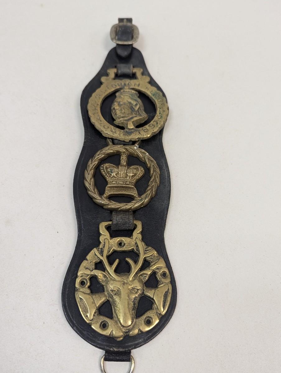 Vintage British Horse Guard 3 Brass Medals On Leather Strap