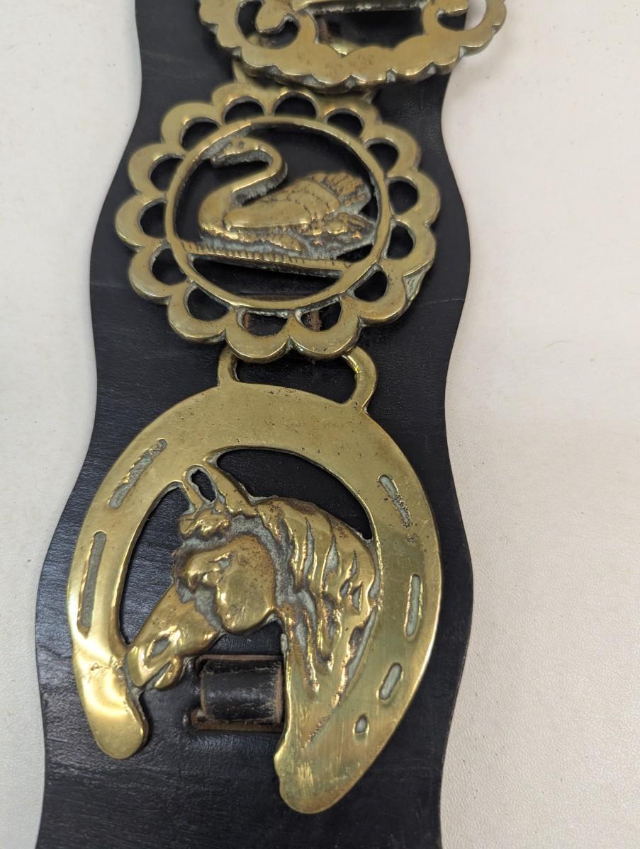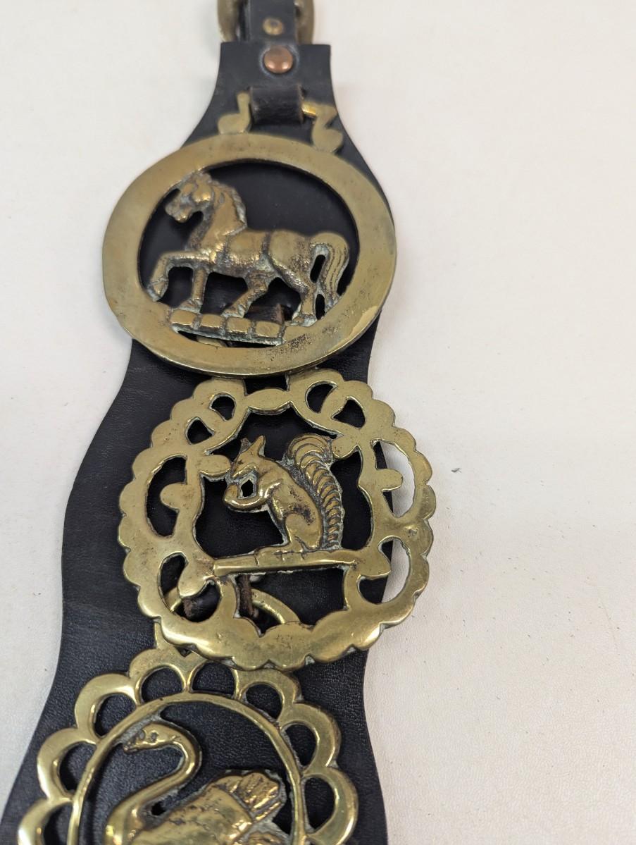 Vintage British Horse Guard 4 Brass Medals On Leather Strap
