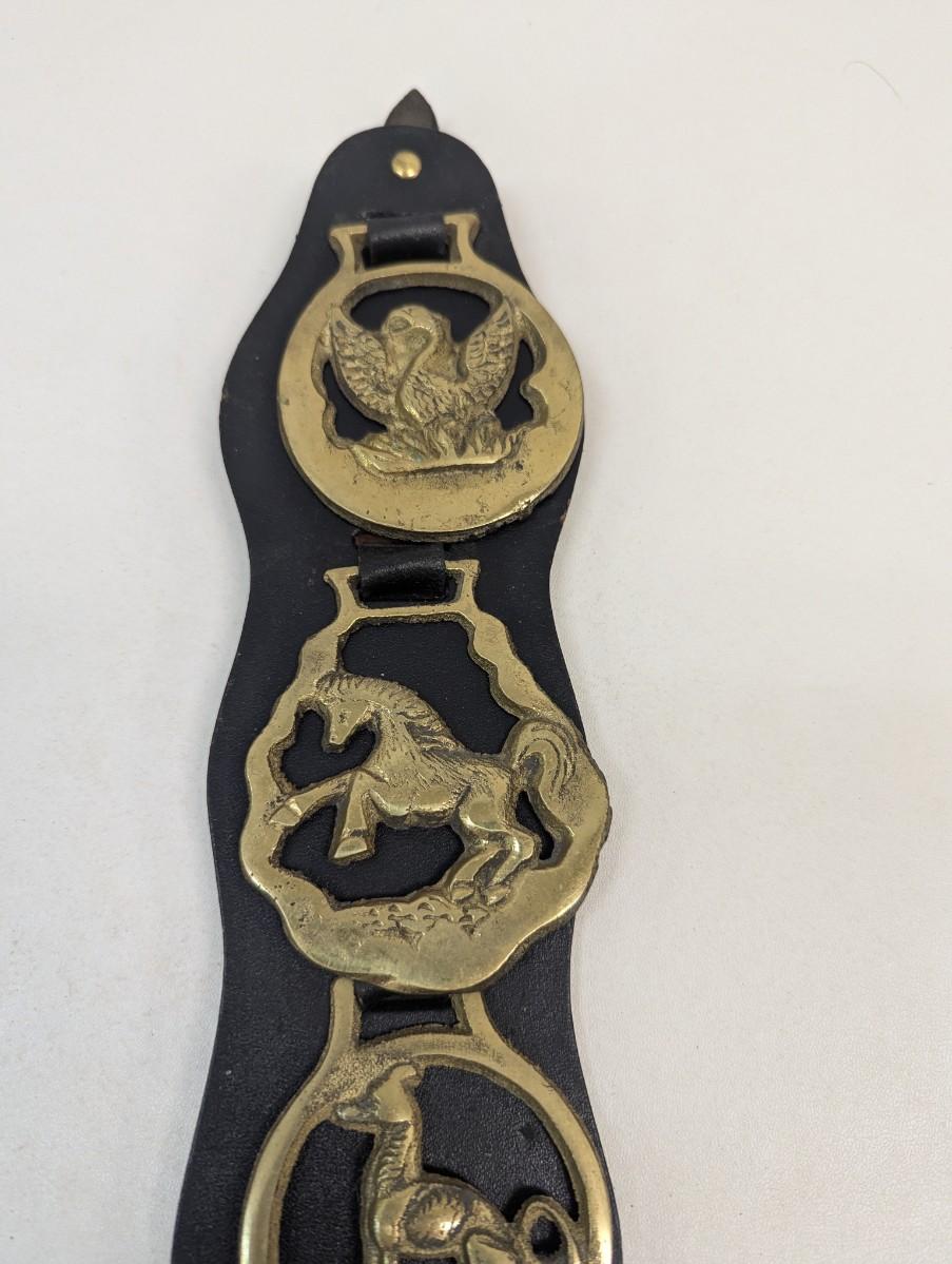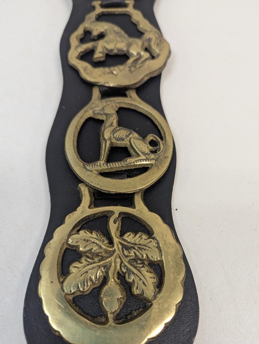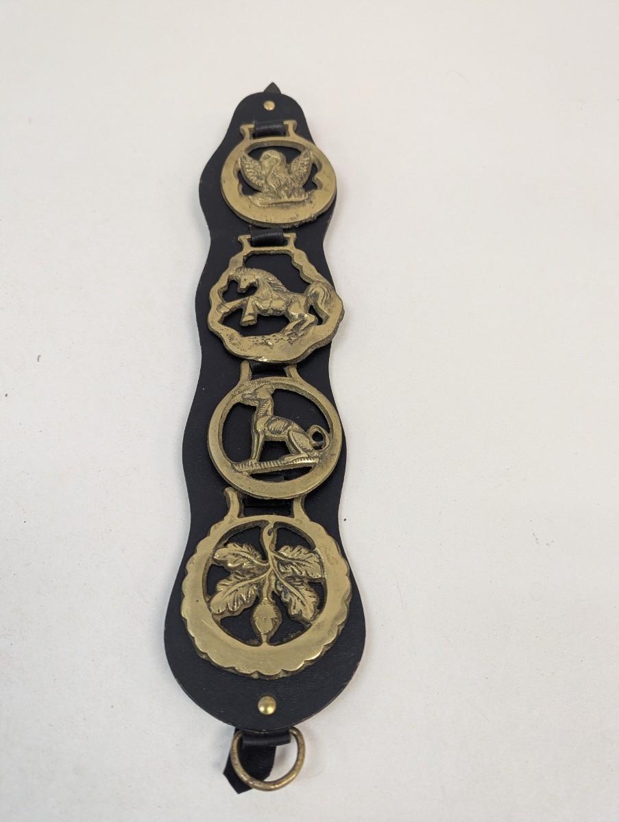 Vintage British Horse Guard 4 Brass Medals On Leather Strap