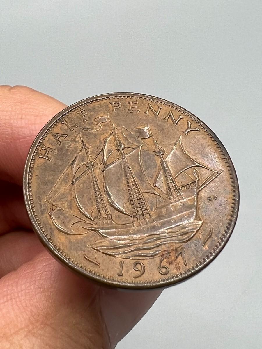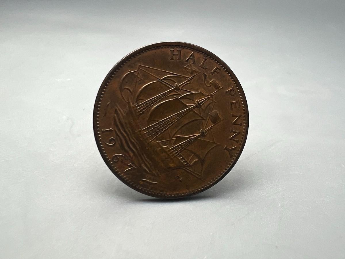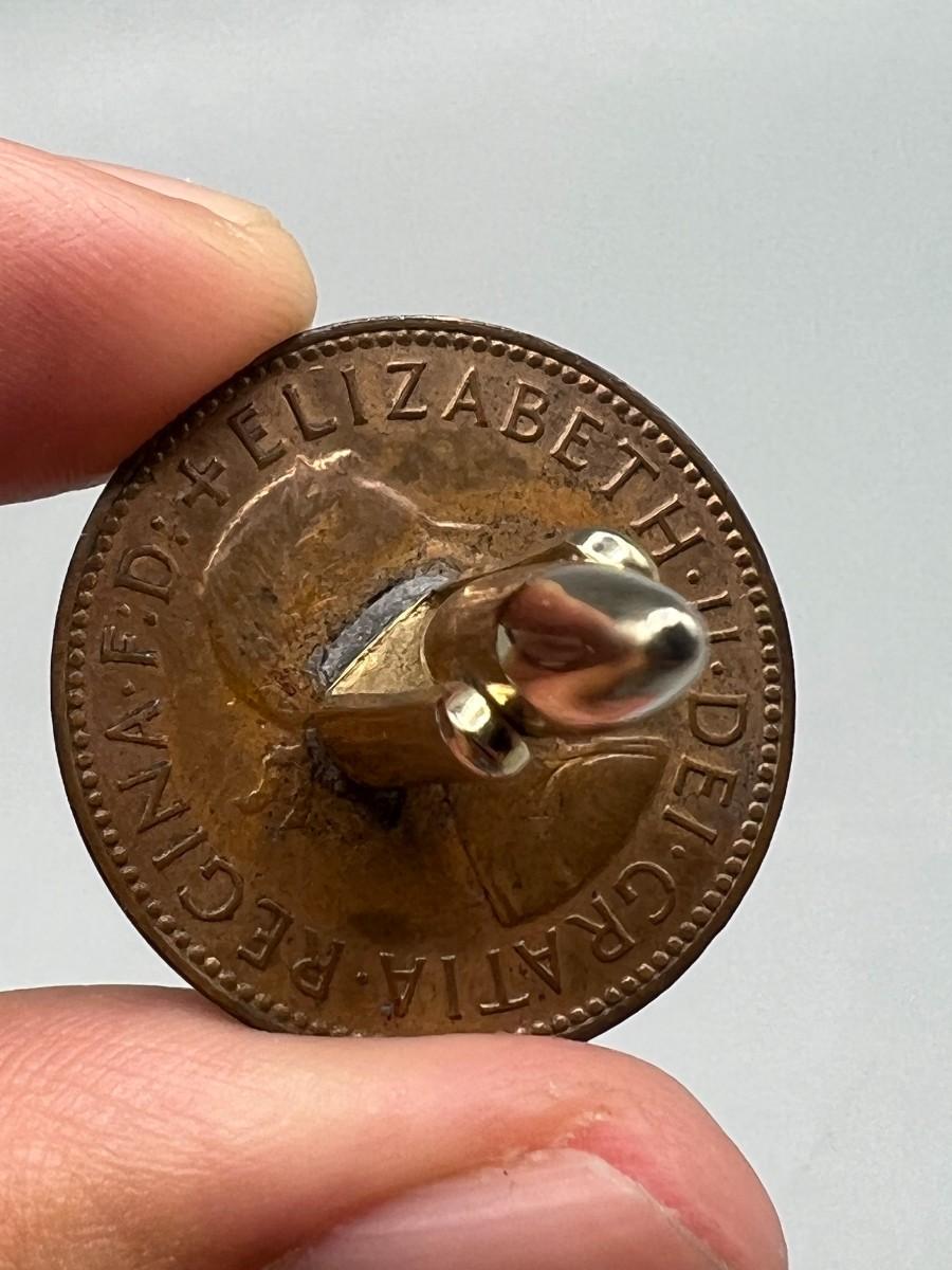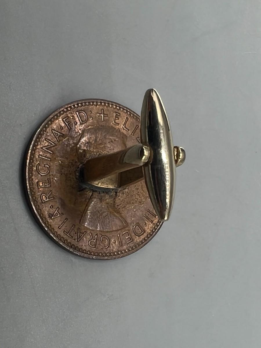 Vintage British Queen Elizabeth Half Penny Foreign Currency Coin Single Cufflink