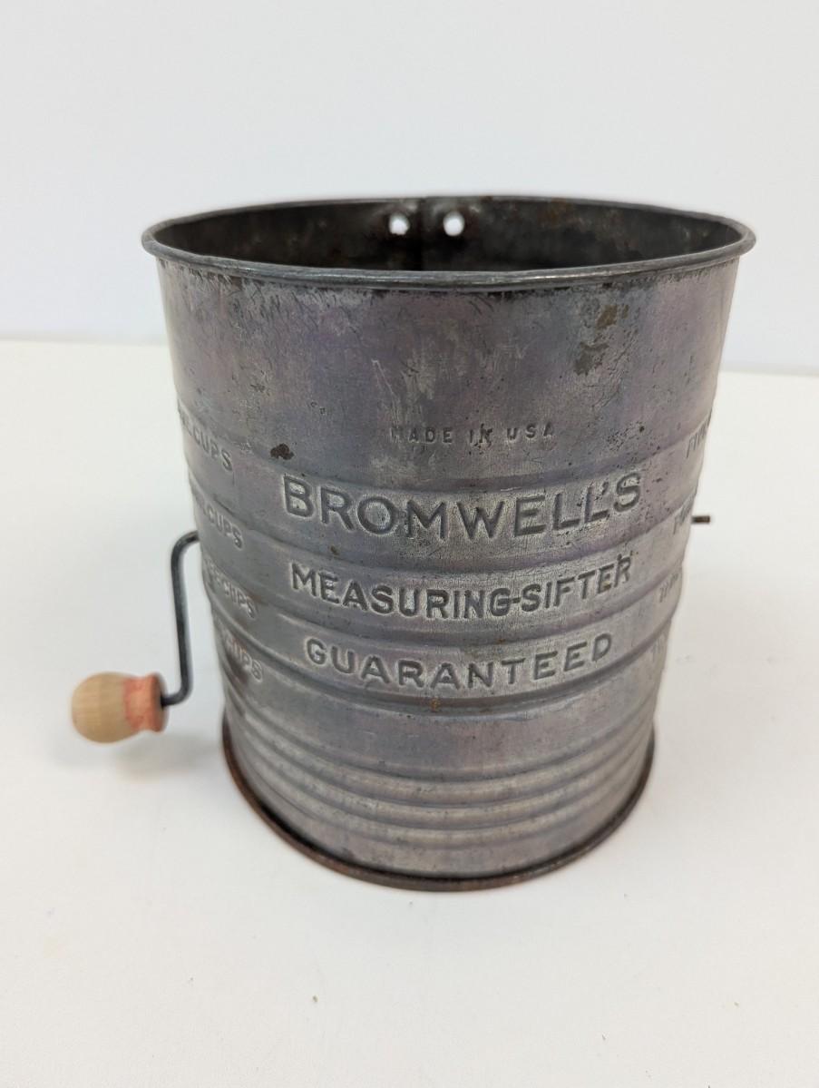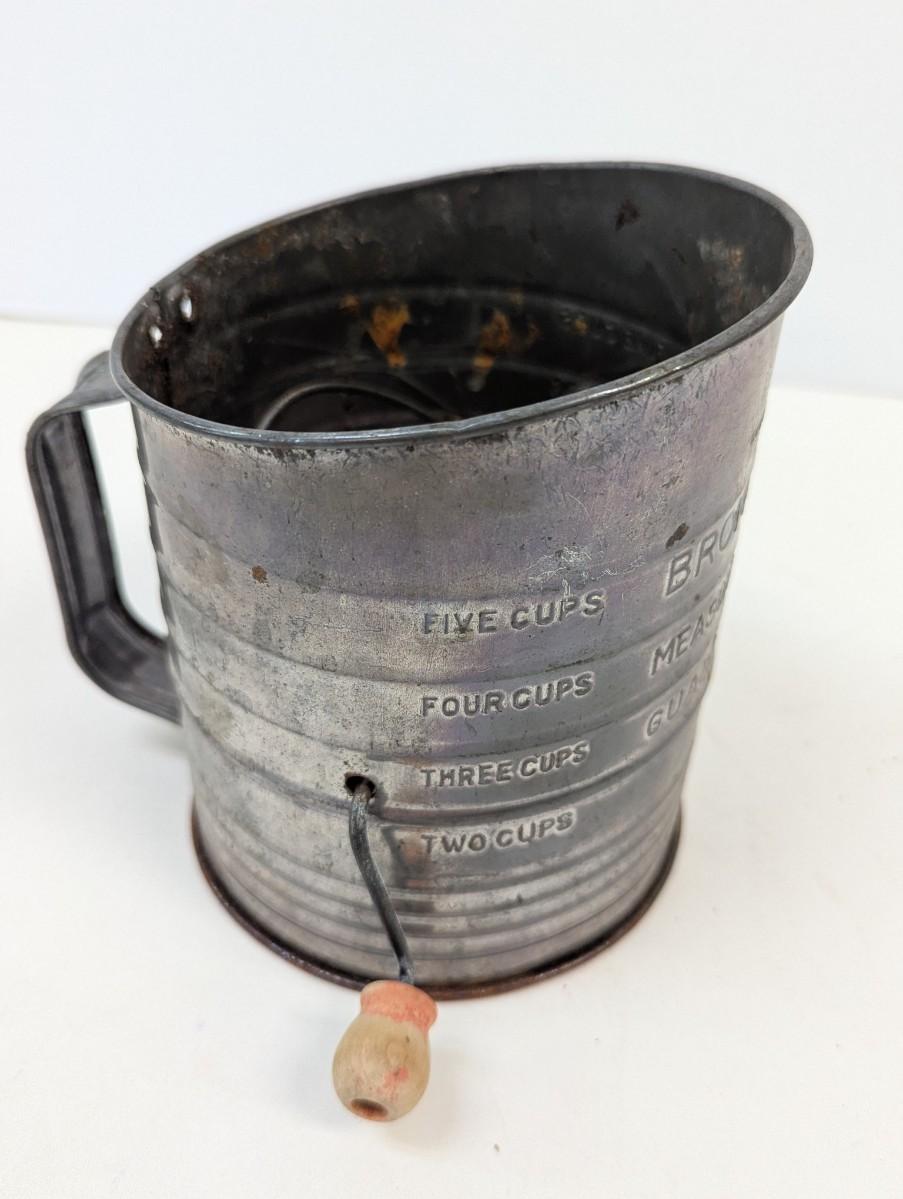 Vintage Bromwell's 5-Cup Measuring-Sifter With Wood Knob Handle USA