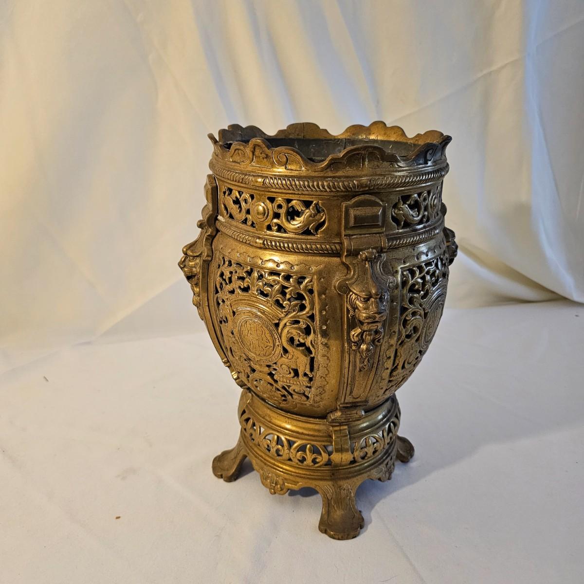 Vintage Bronze Asian Footed Jardiniere  (BP-JS)