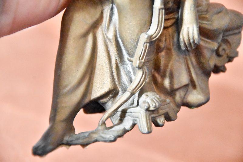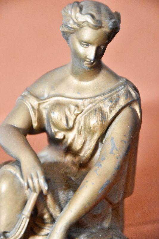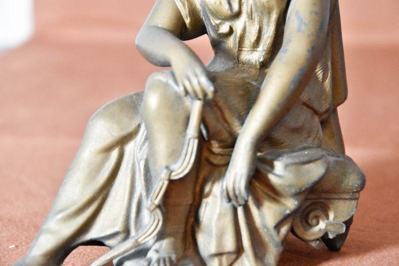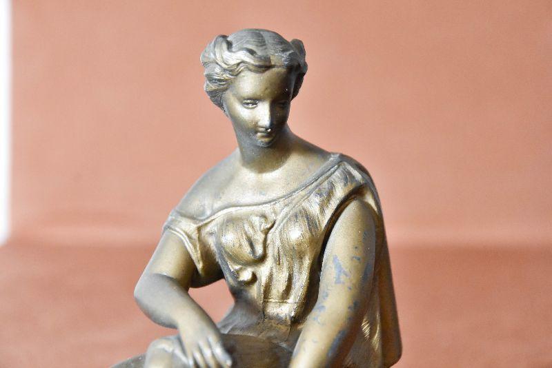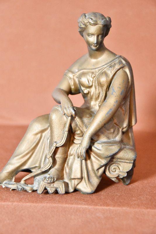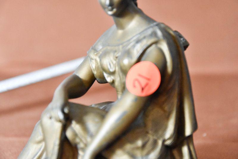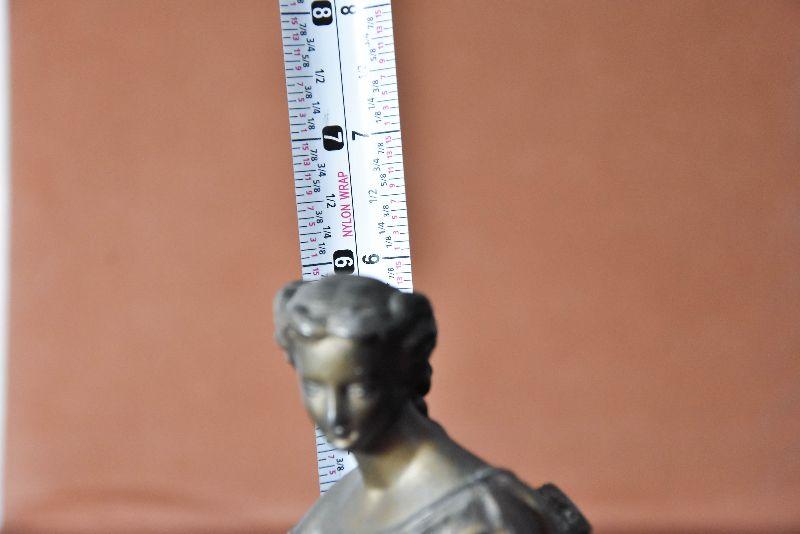 Beautiful vintage bronze cast figurine. Has some wear and the arrows are missing from the quiver. Still a beautiful rendition of a female Roman warrior.