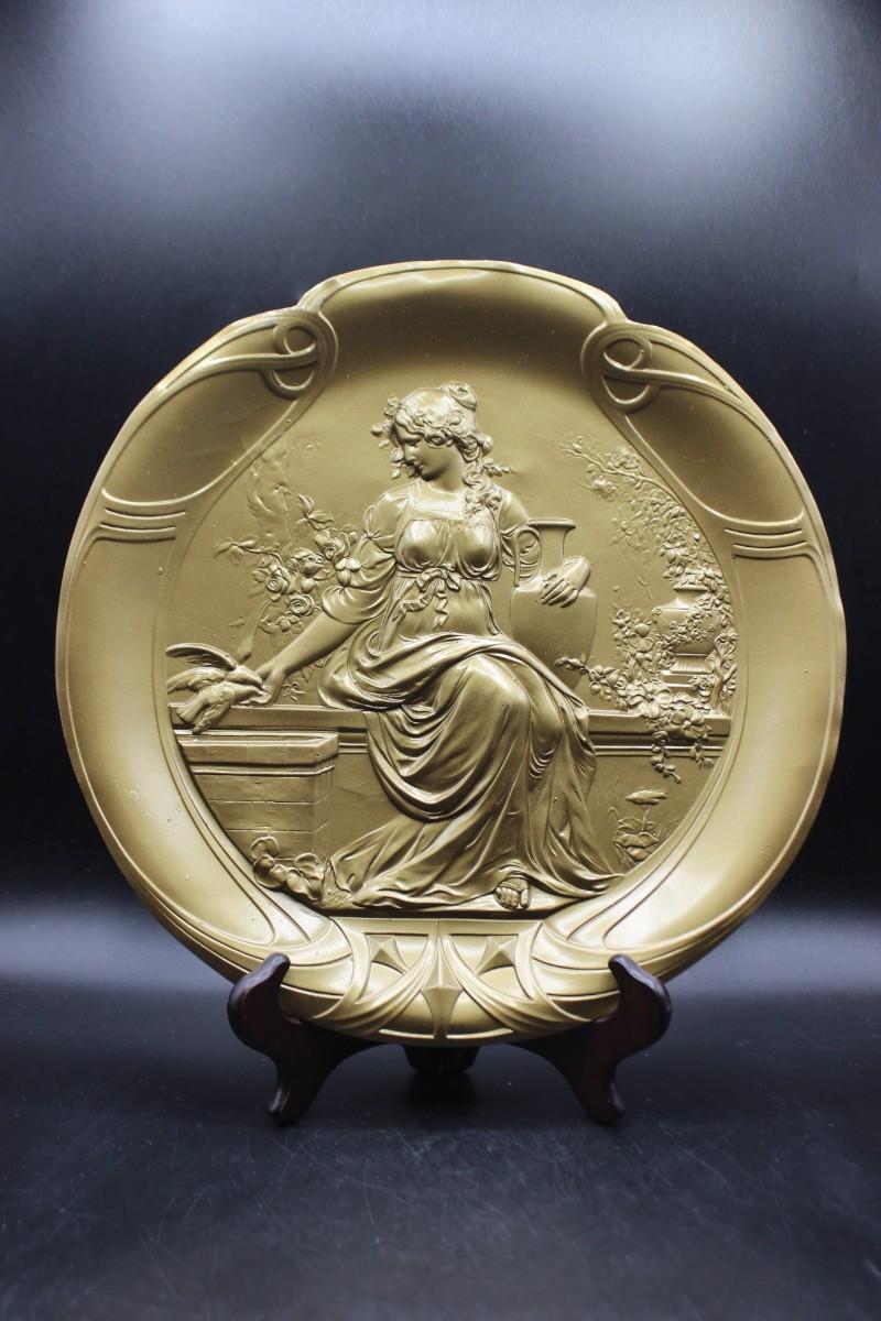 Vintage Bronze Greek Style Goddess Decorative Art Plate