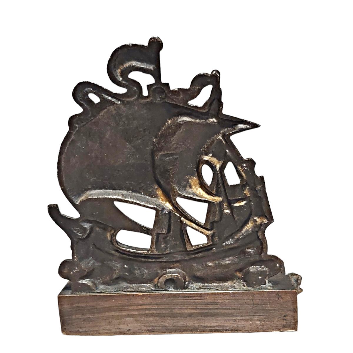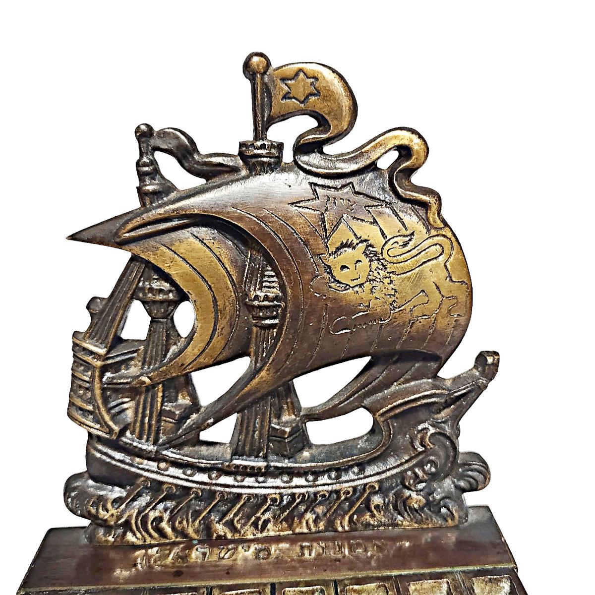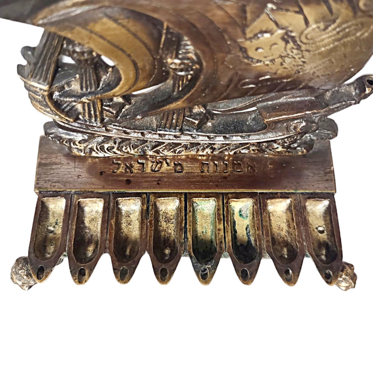 - Vintage Cast Bronze Engraved Menorrah in the Form of a Galley Ship