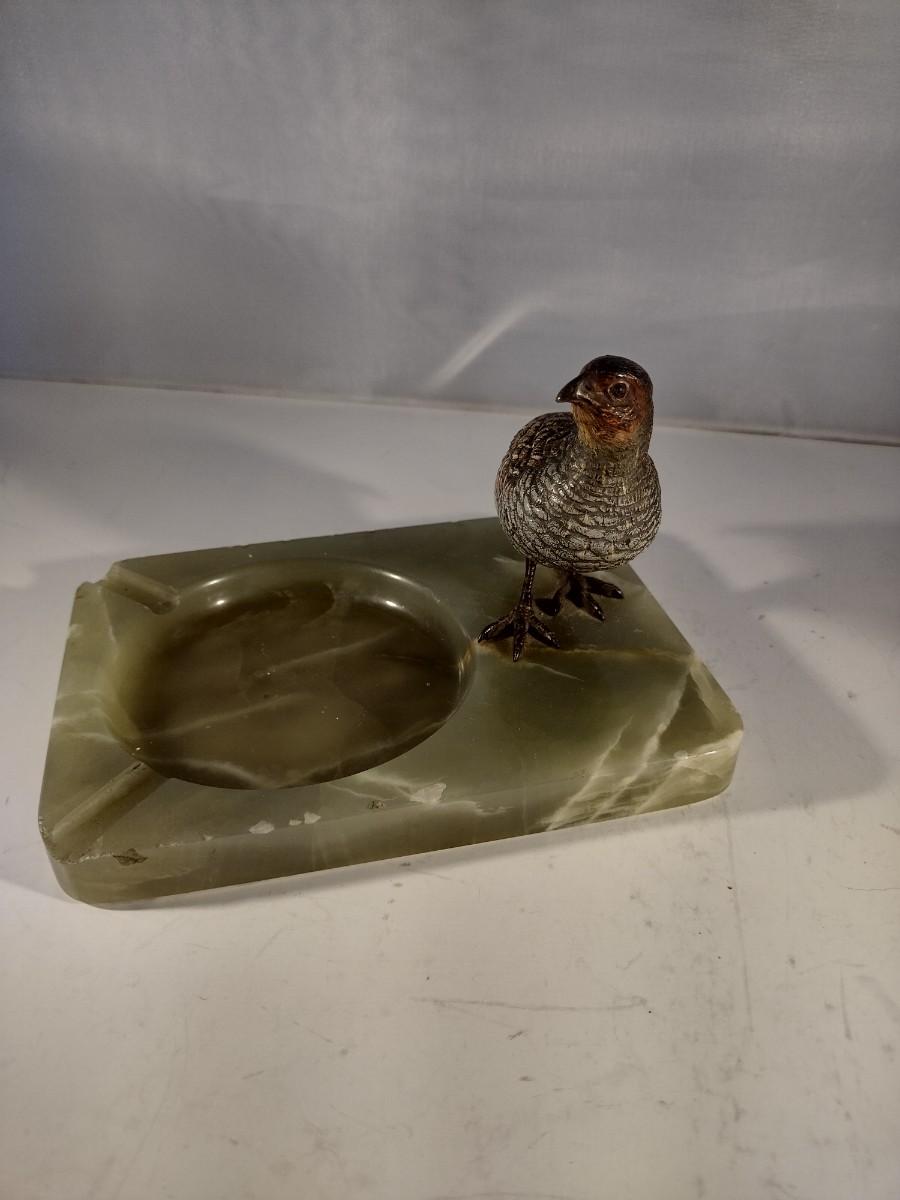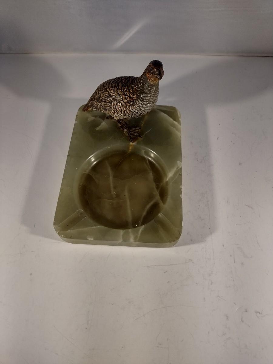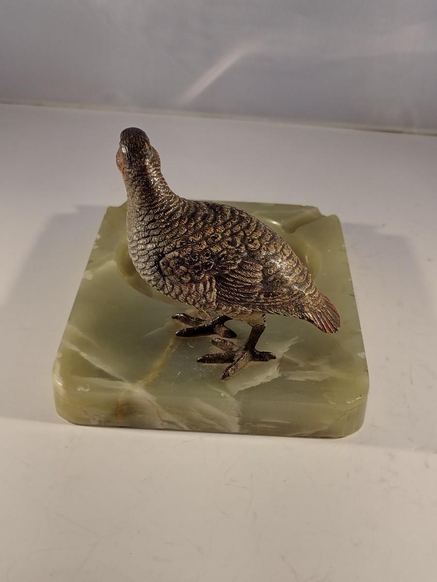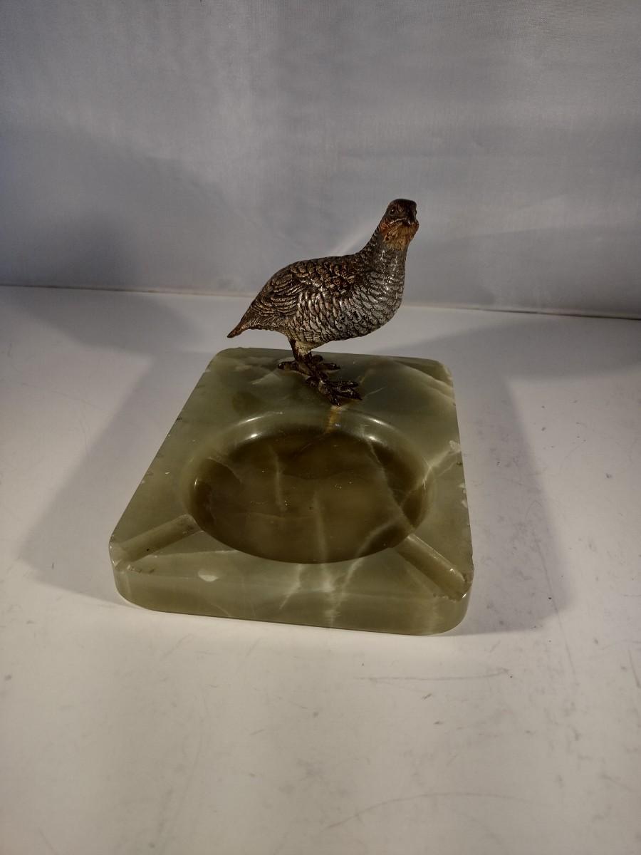Vintage Bronze Partridge Mounted on Onyx Ashtray
