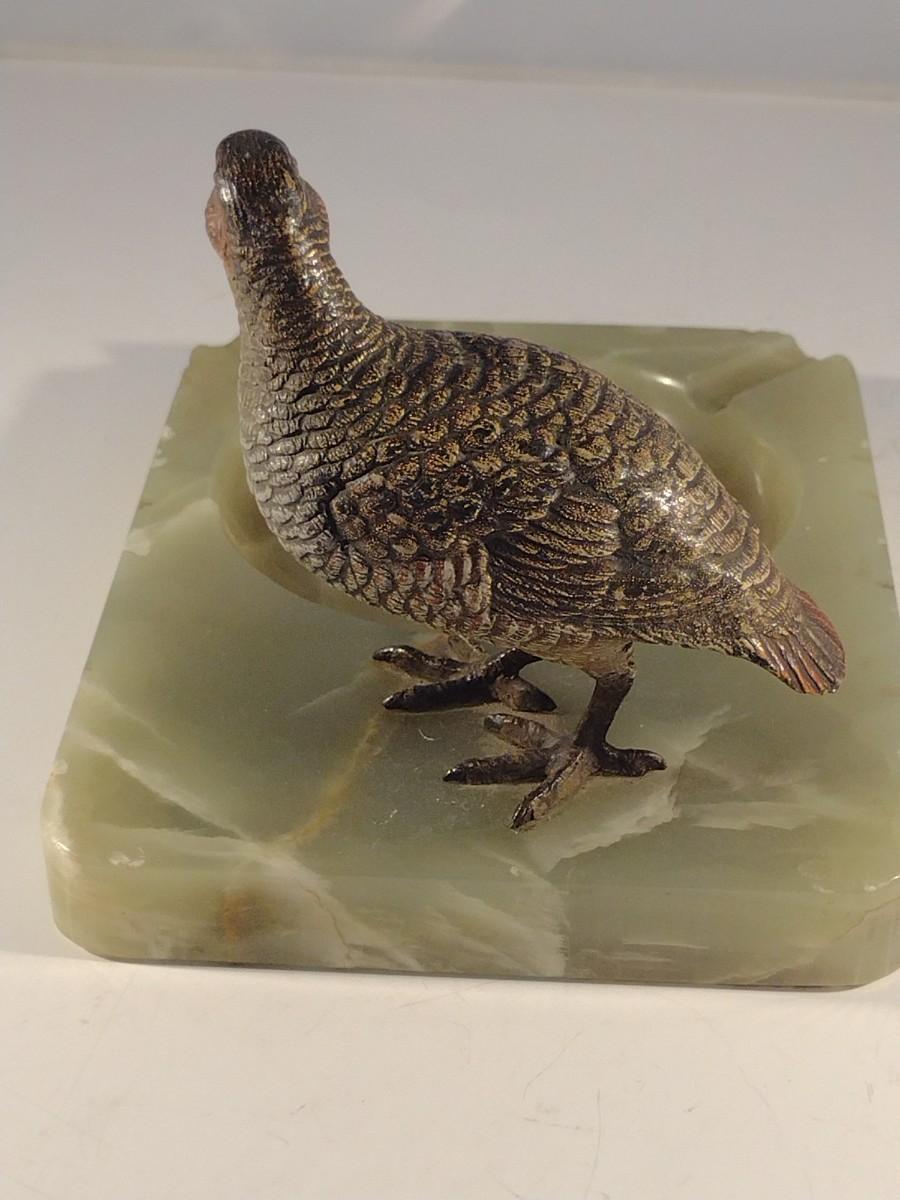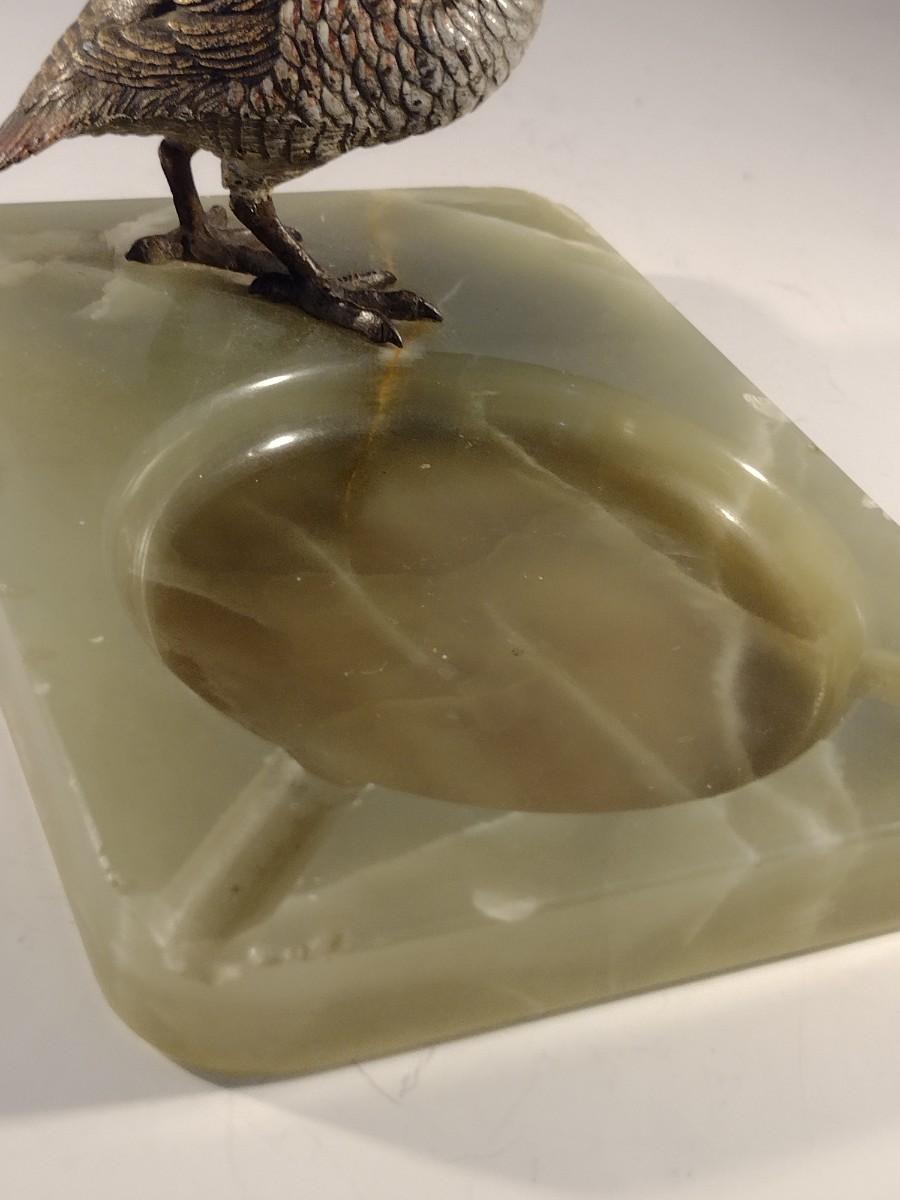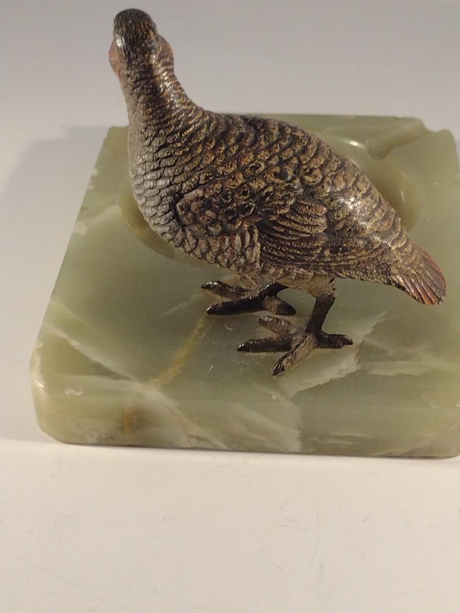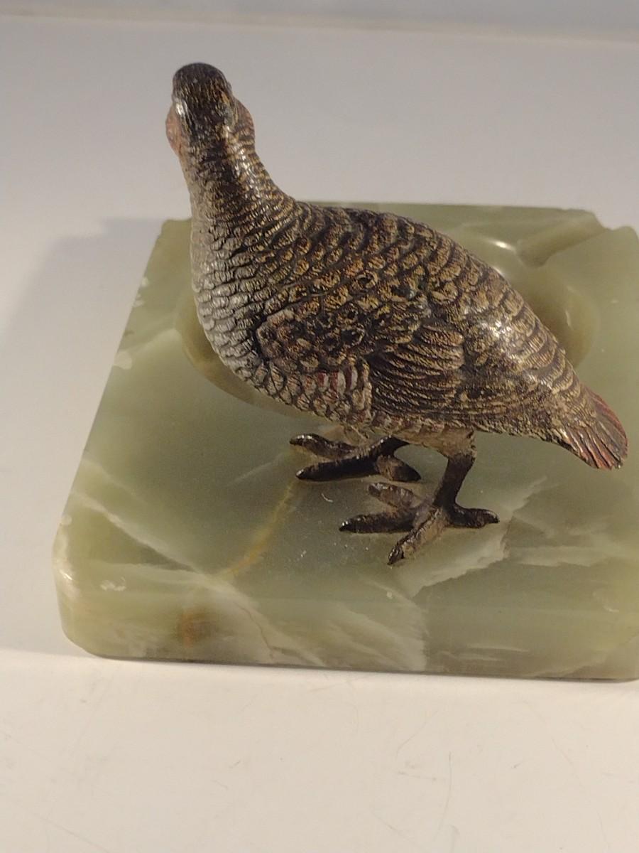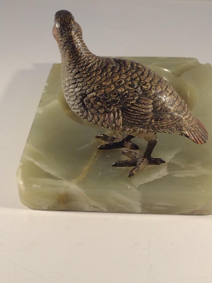 Vintage Bronze Partridge Mounted on Onyx Ashtray