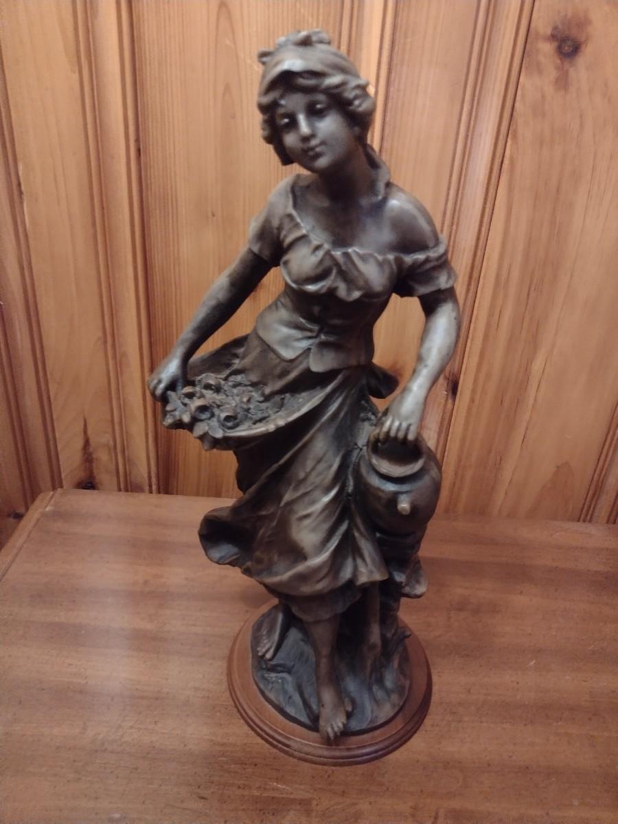Vintage Bronze Woman with Jar Statuette