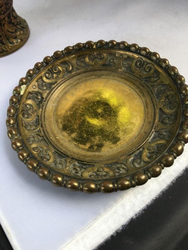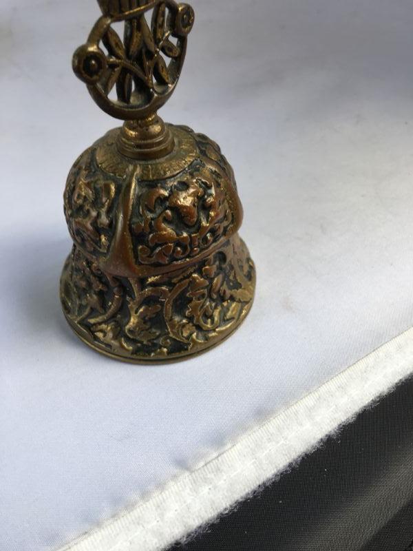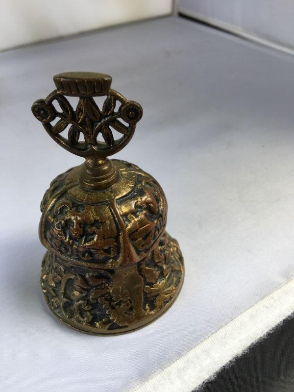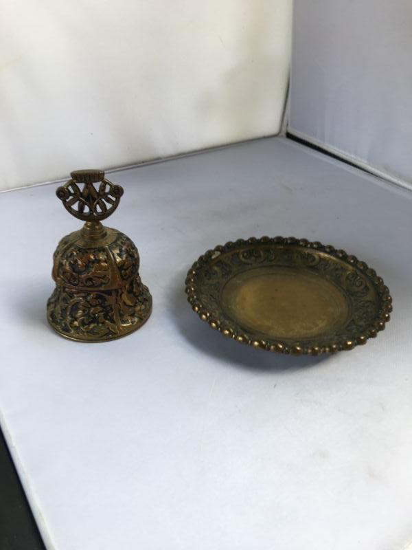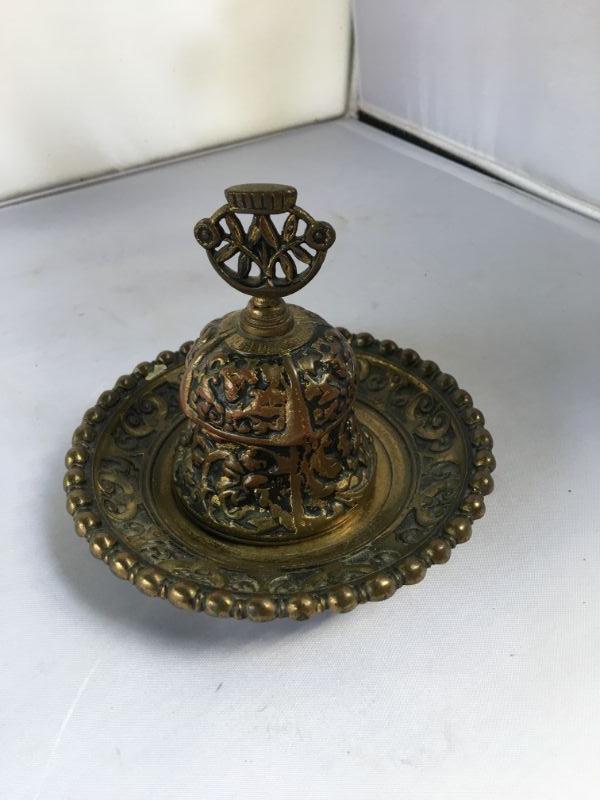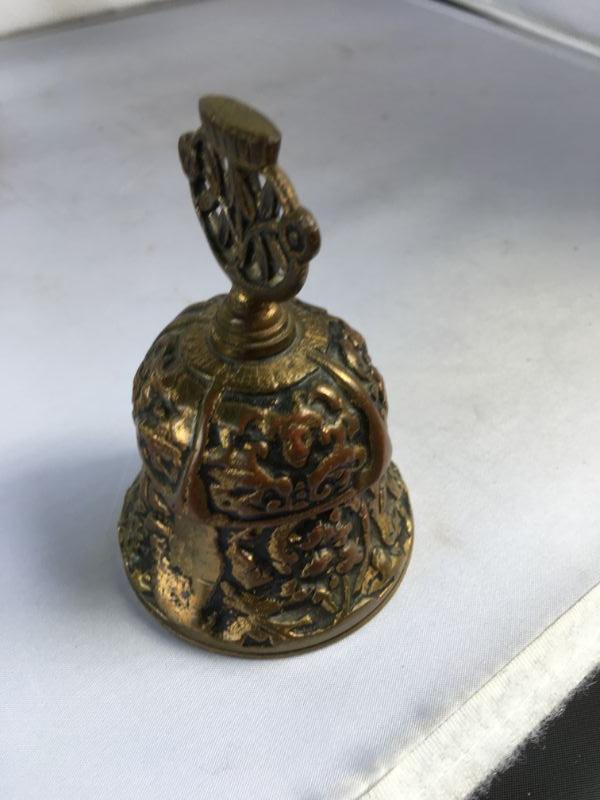I fine conditions. Great sound. 3.5" height of the bell and almost 5" diameter of the plate.