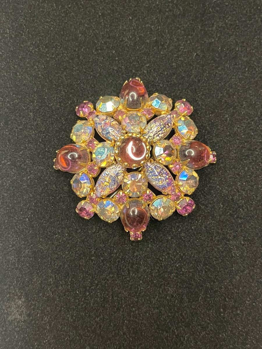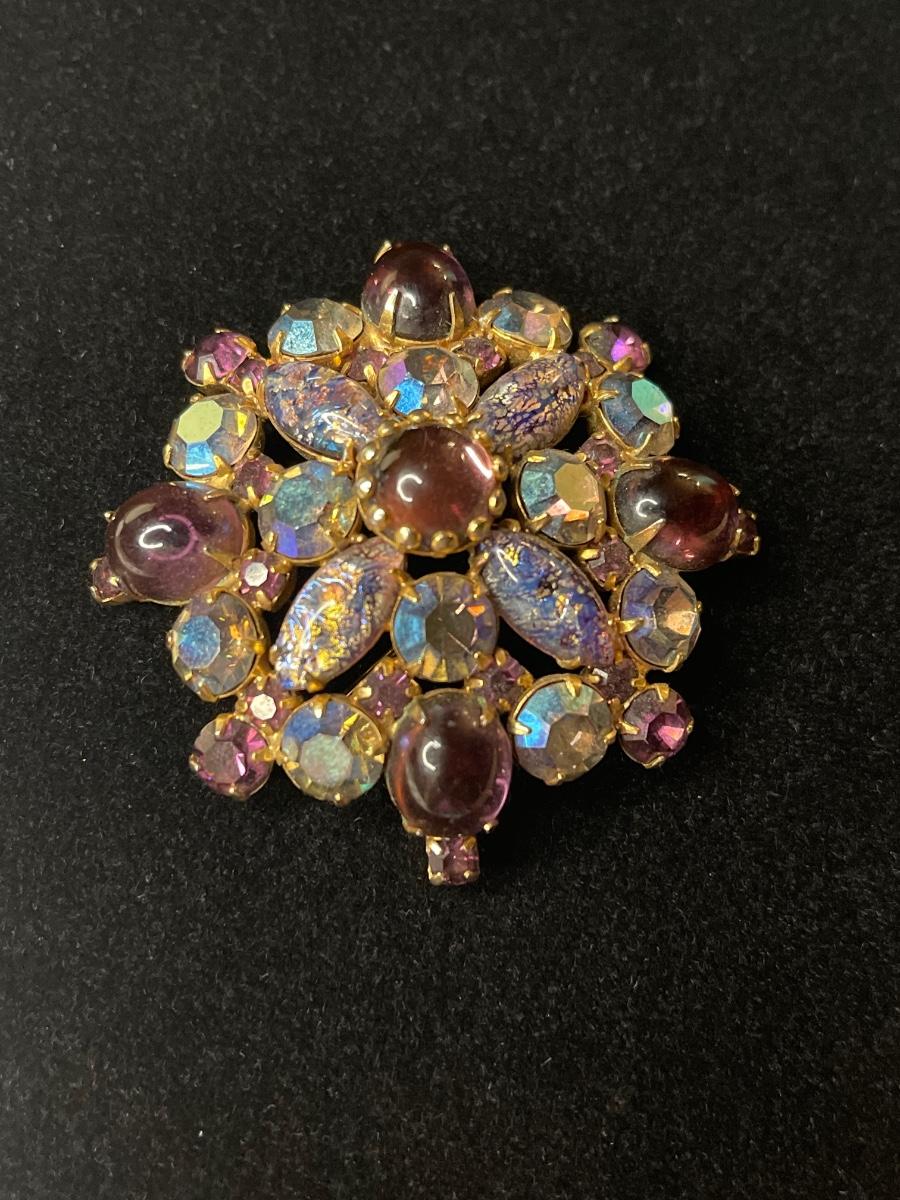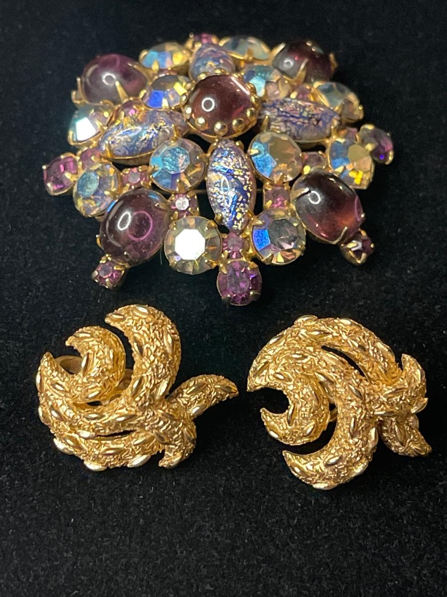Rhinestone vintage brooch unsigned and trifari clip on earrings. Beautiful!!