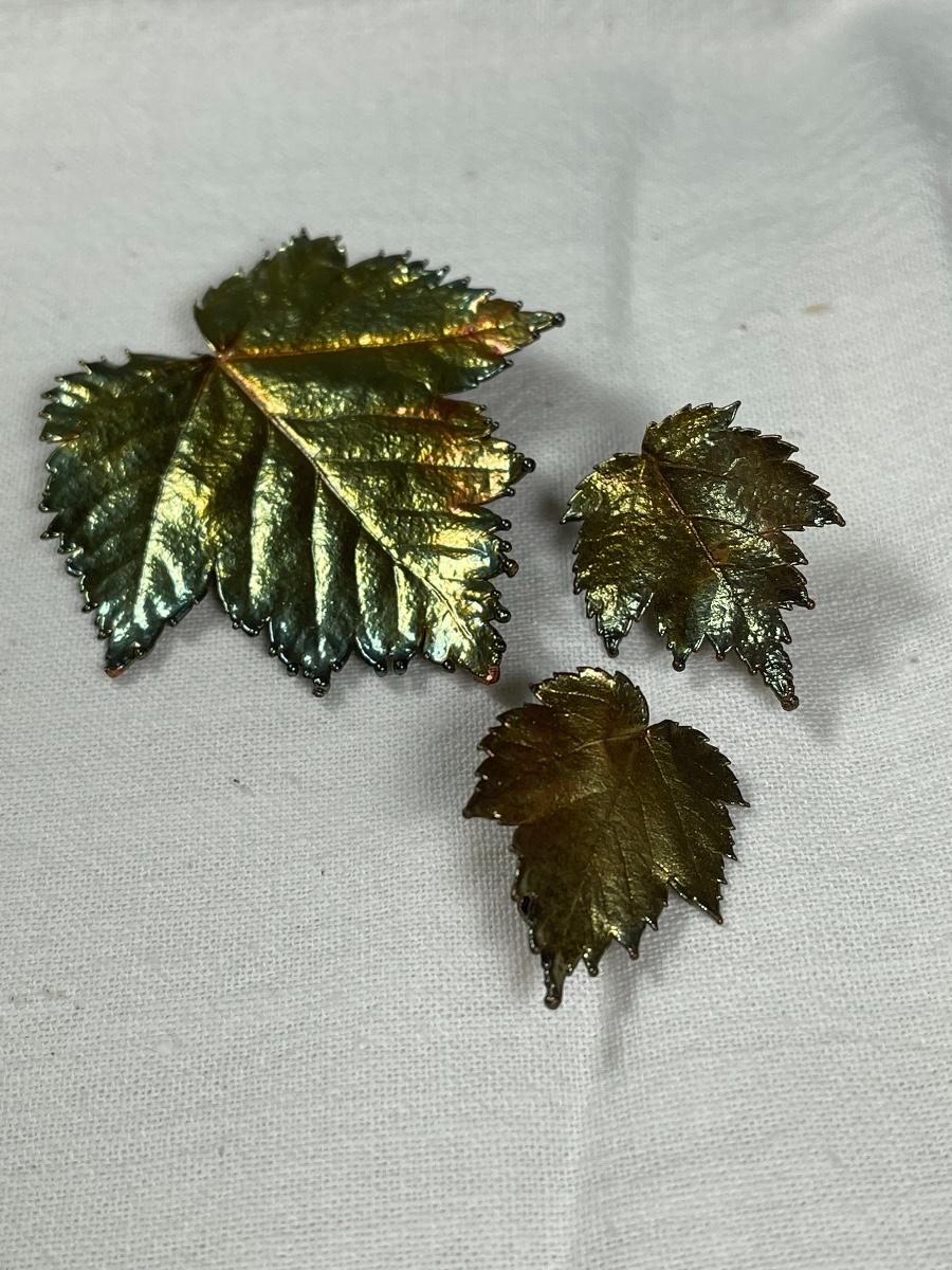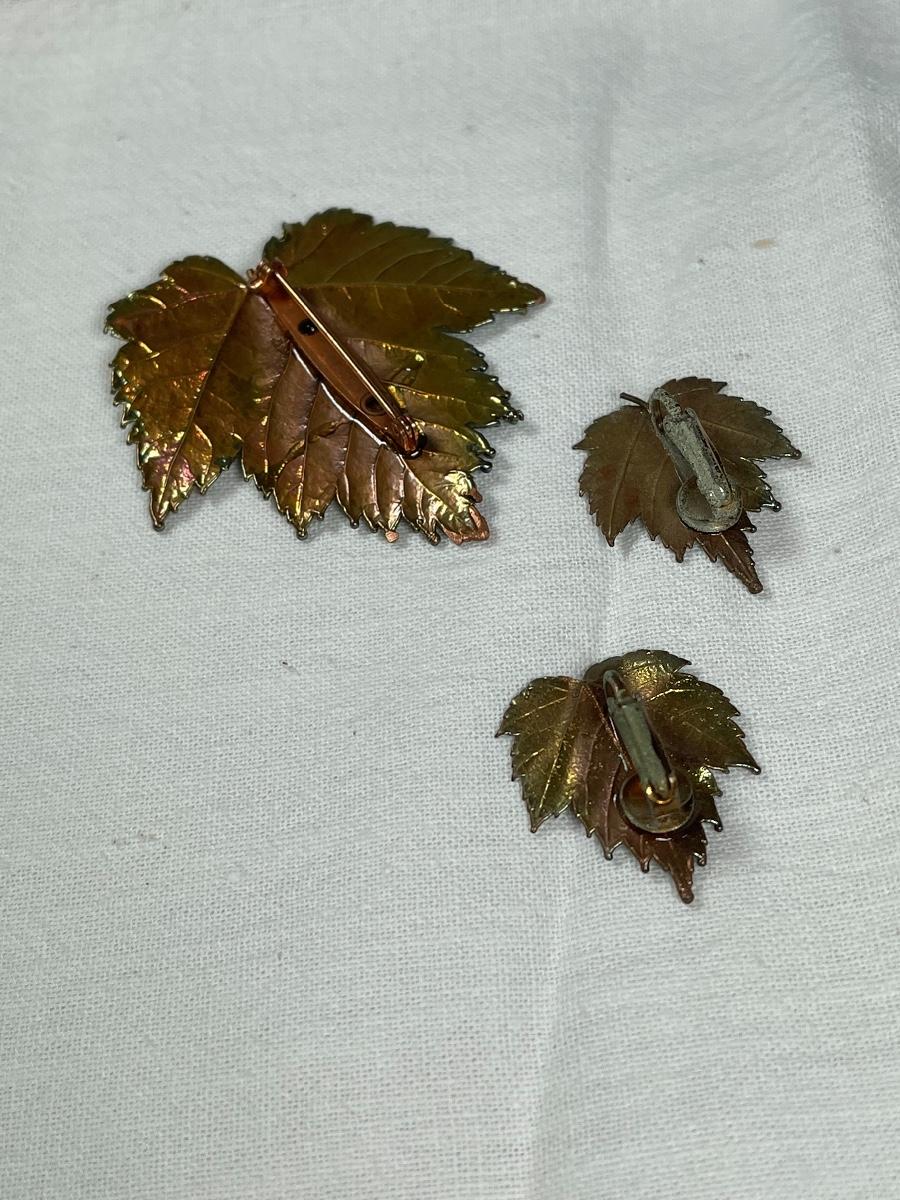 Vintage Brooch Pin and Earrings set, pretty fall leaves