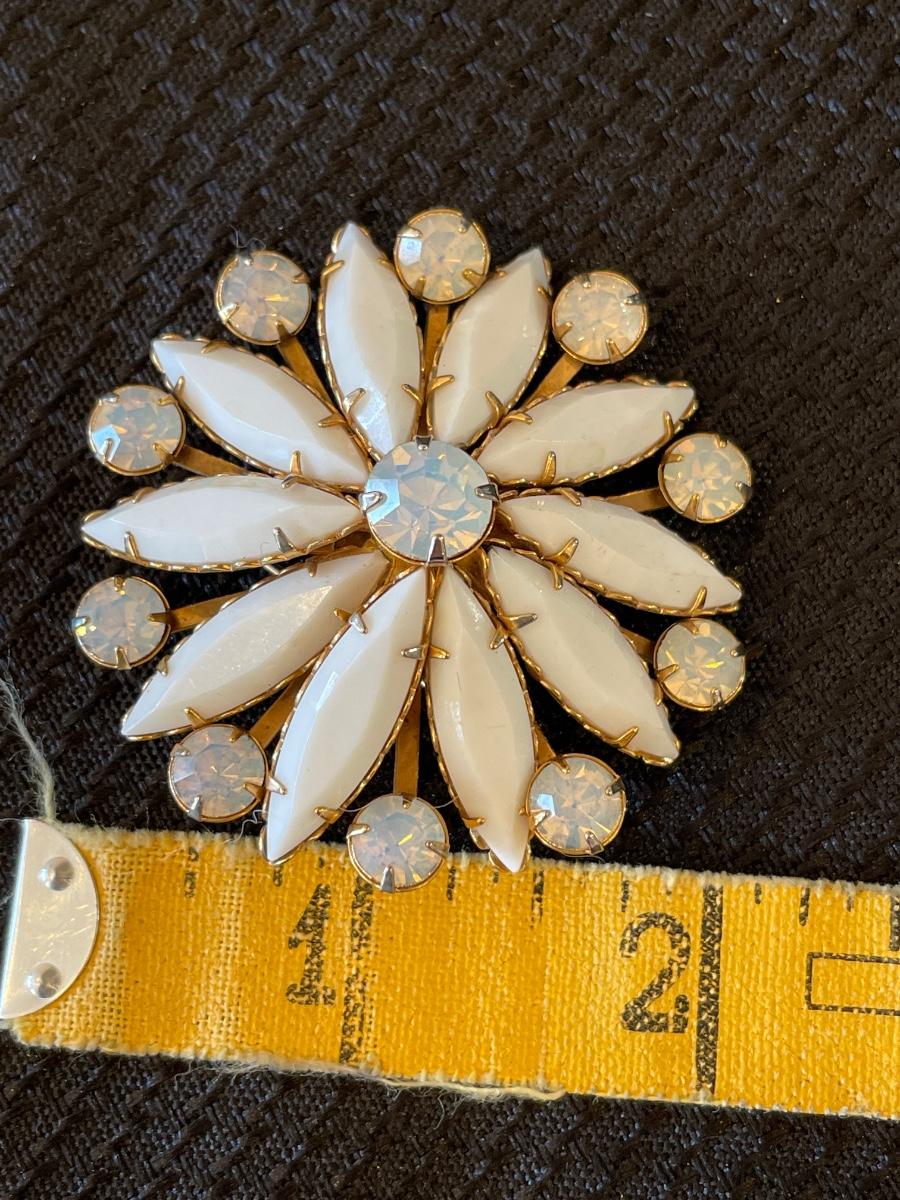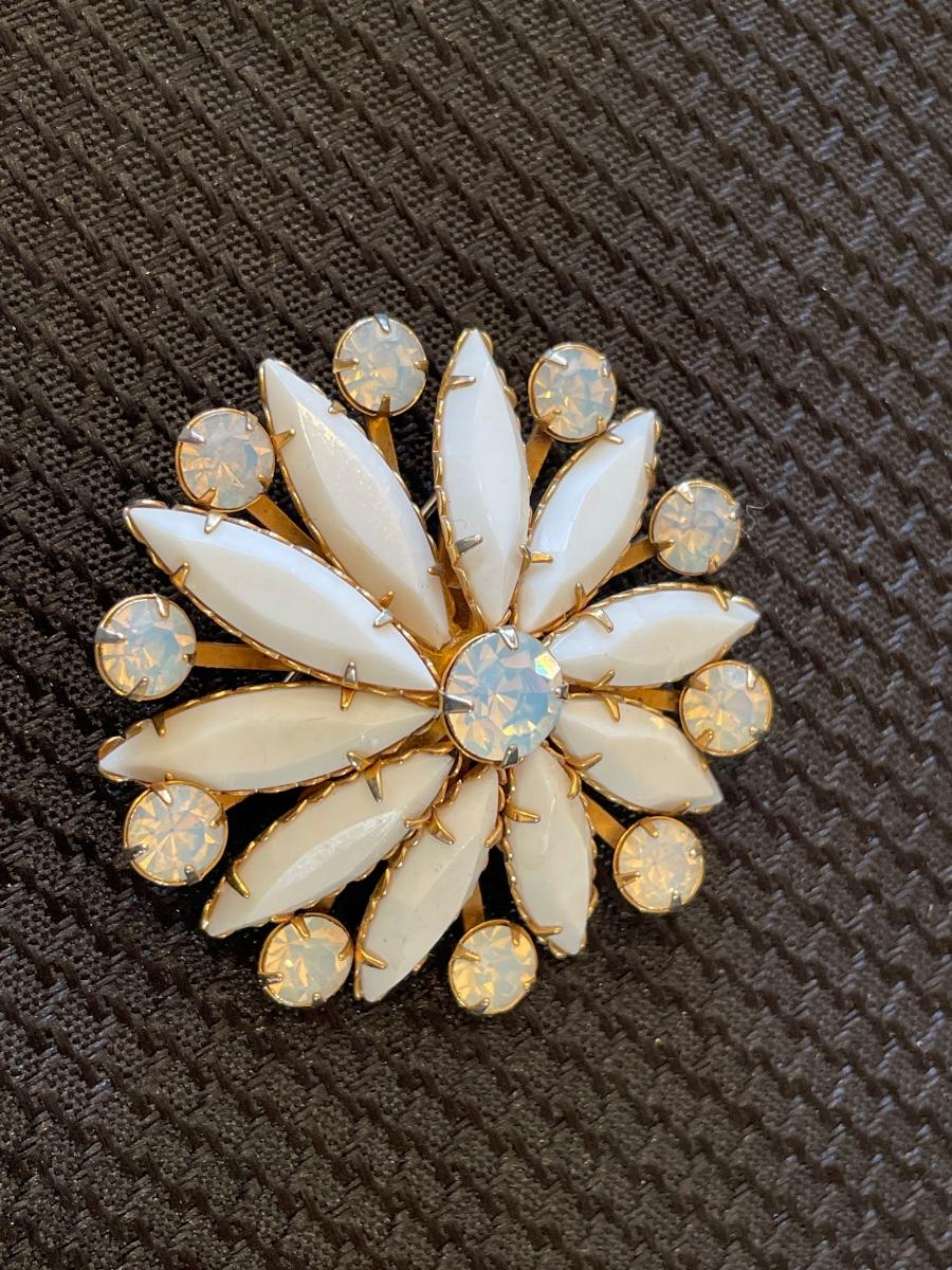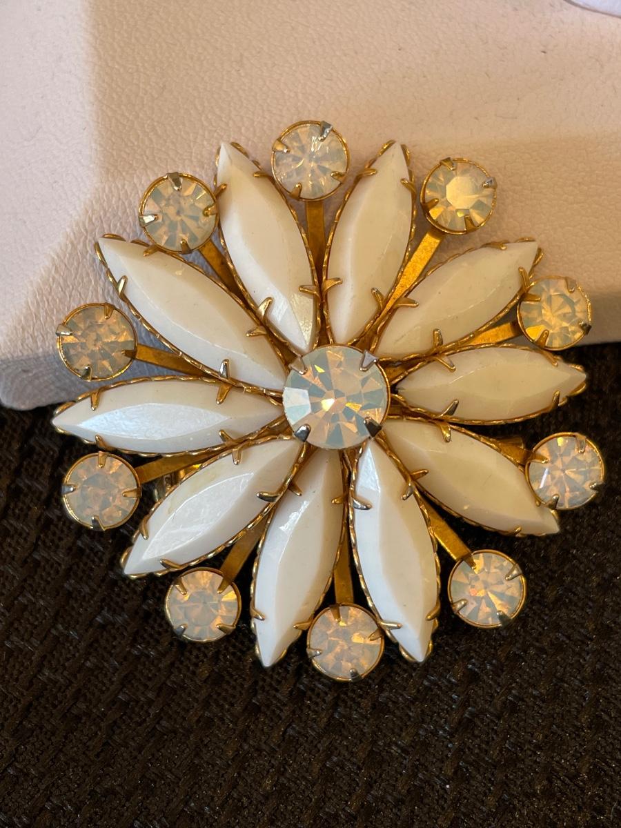 Vintage brooch with white beads & Rhinestones