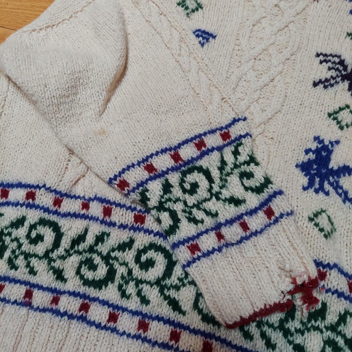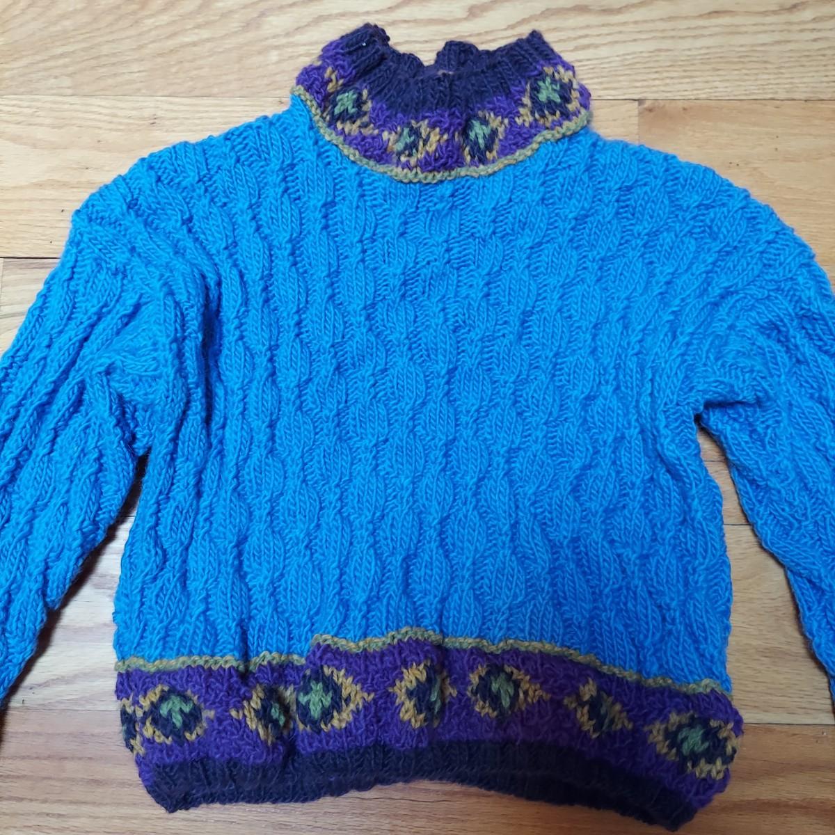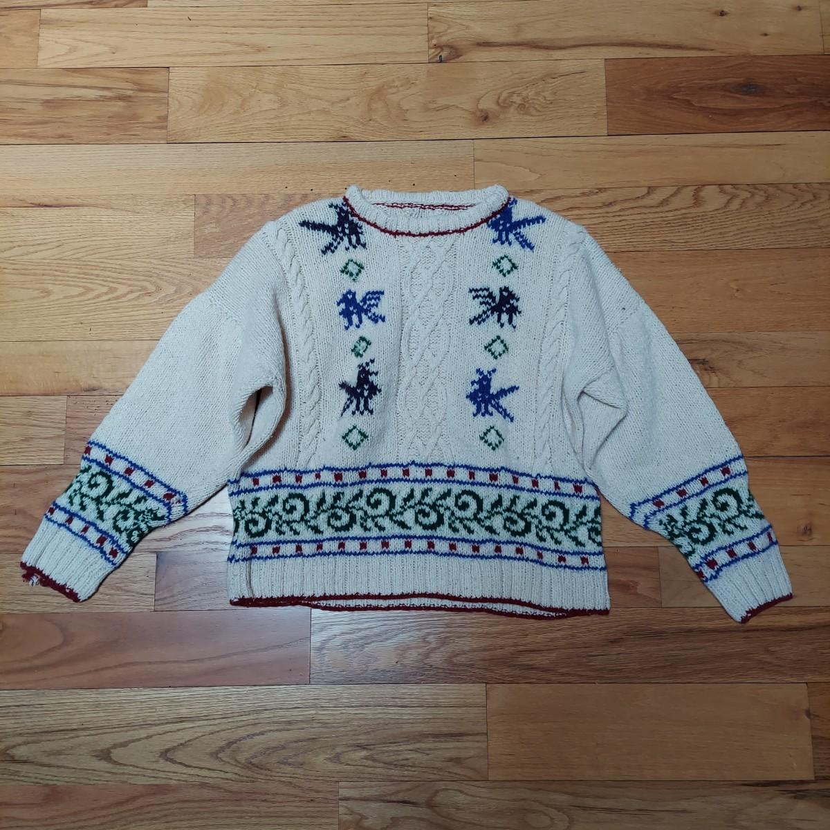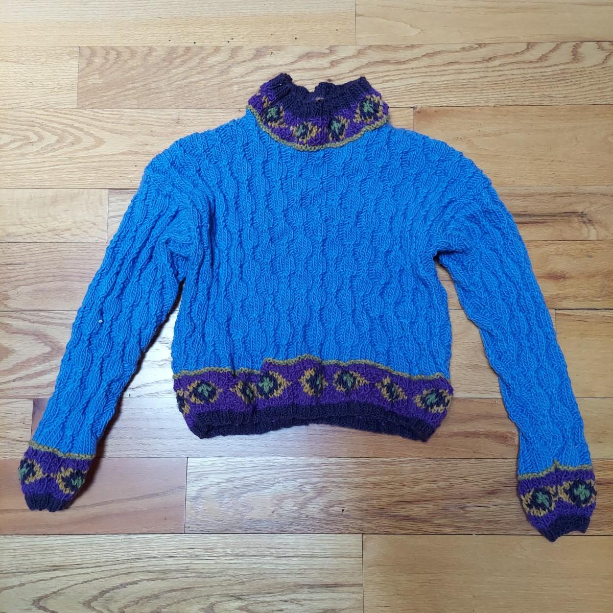 Lot includes five Sweaters that appear to be wool. Two sweaters are handmade and do not have tags. Sweaters are in varying sizes. Please see photos for details. Shipping available