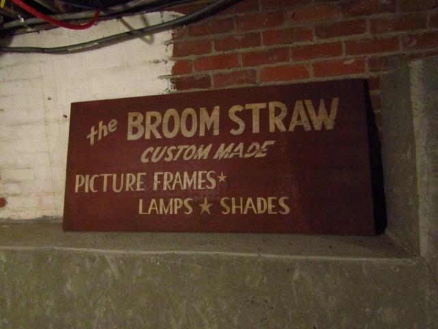 Vintage Broom Straw Laminated Plywood Sign downstairs item