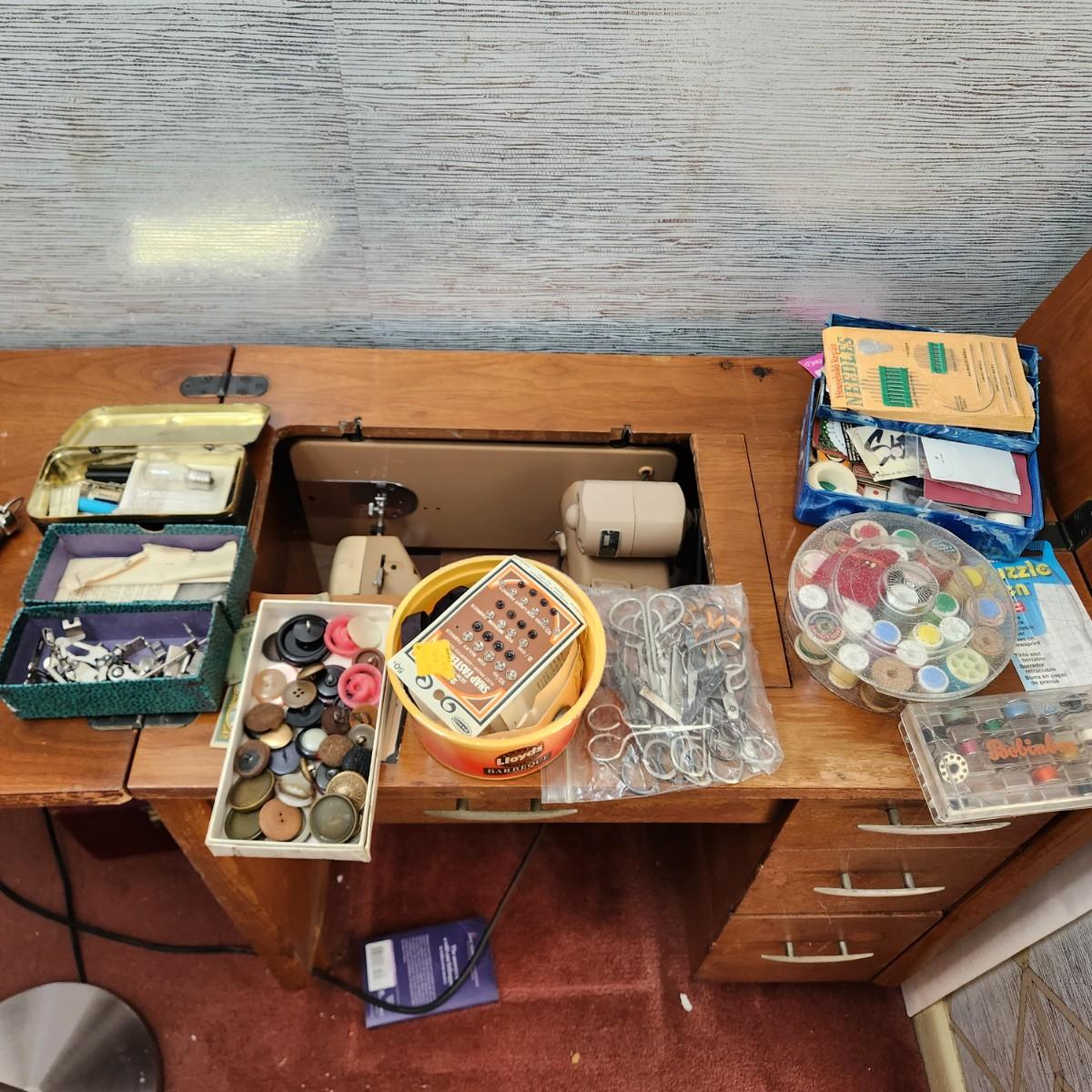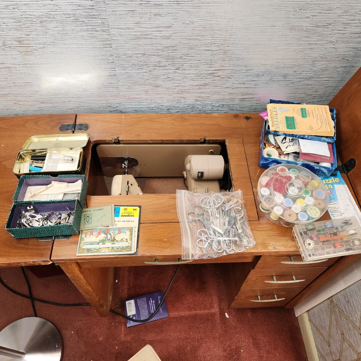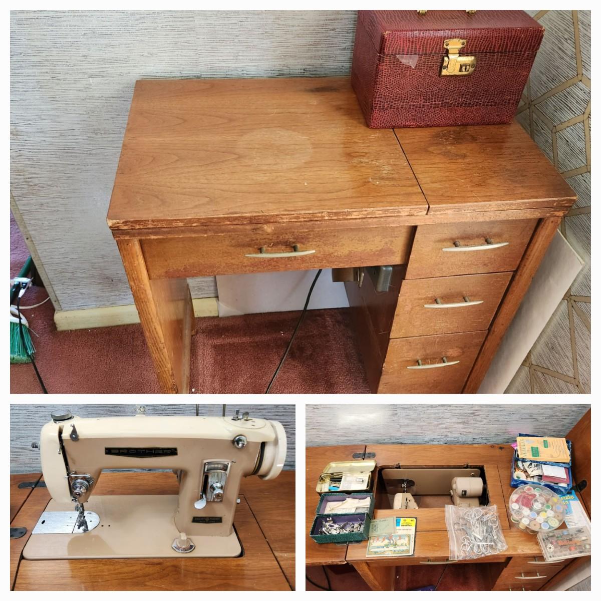 Vintage Brothers all metal sewing machine with cabinet & accessories