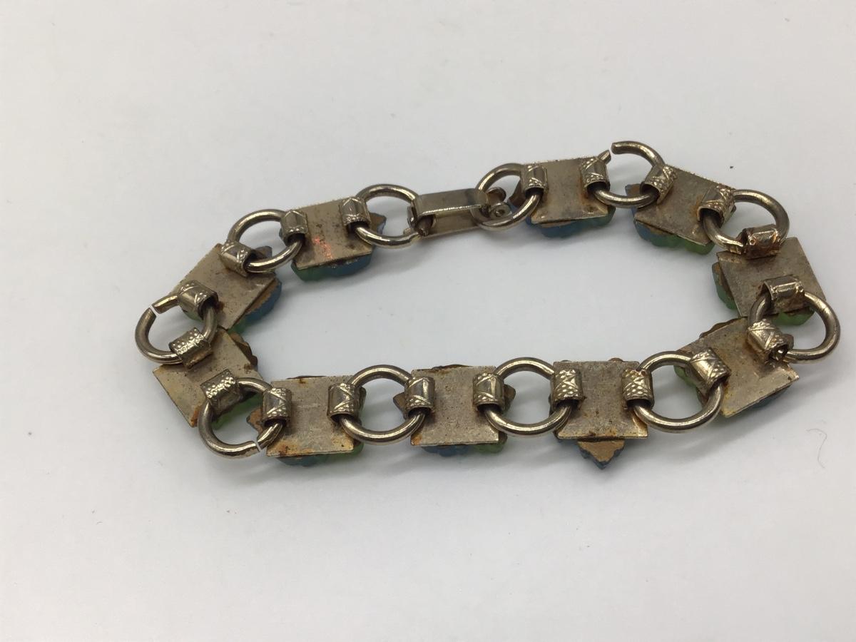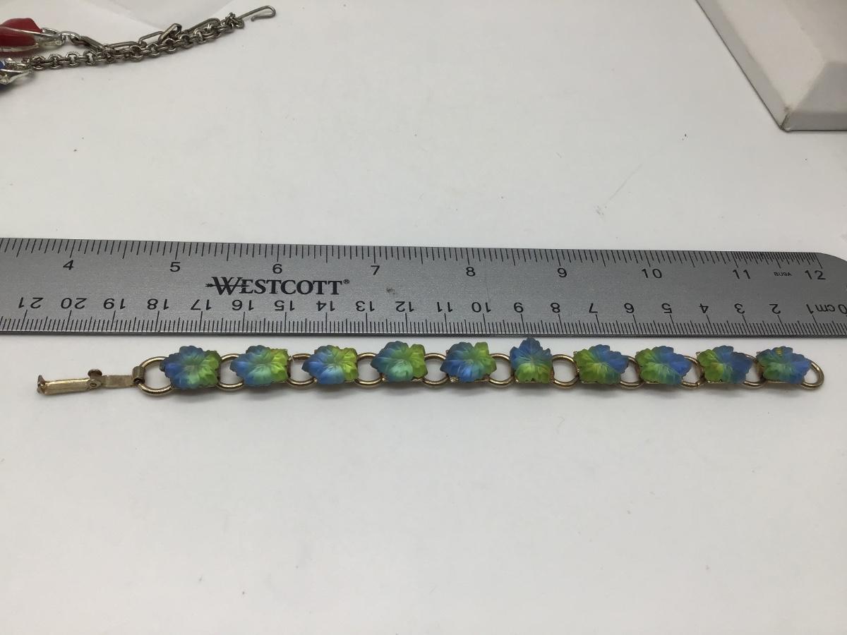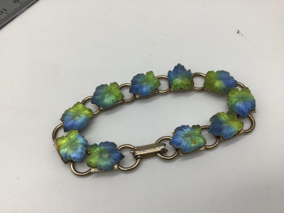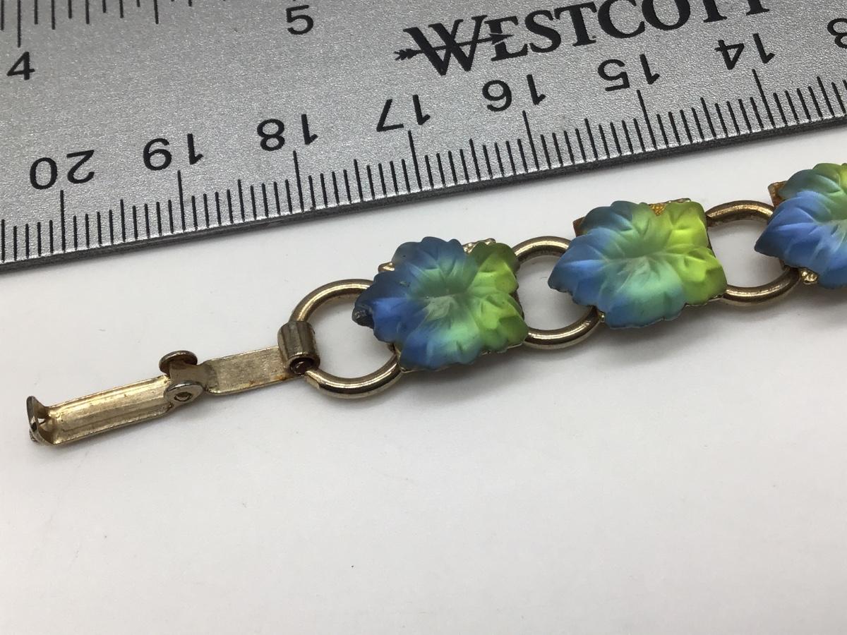 Vintage BraceletGoldtoneb Links with Blue/ Green Lucite Leaves