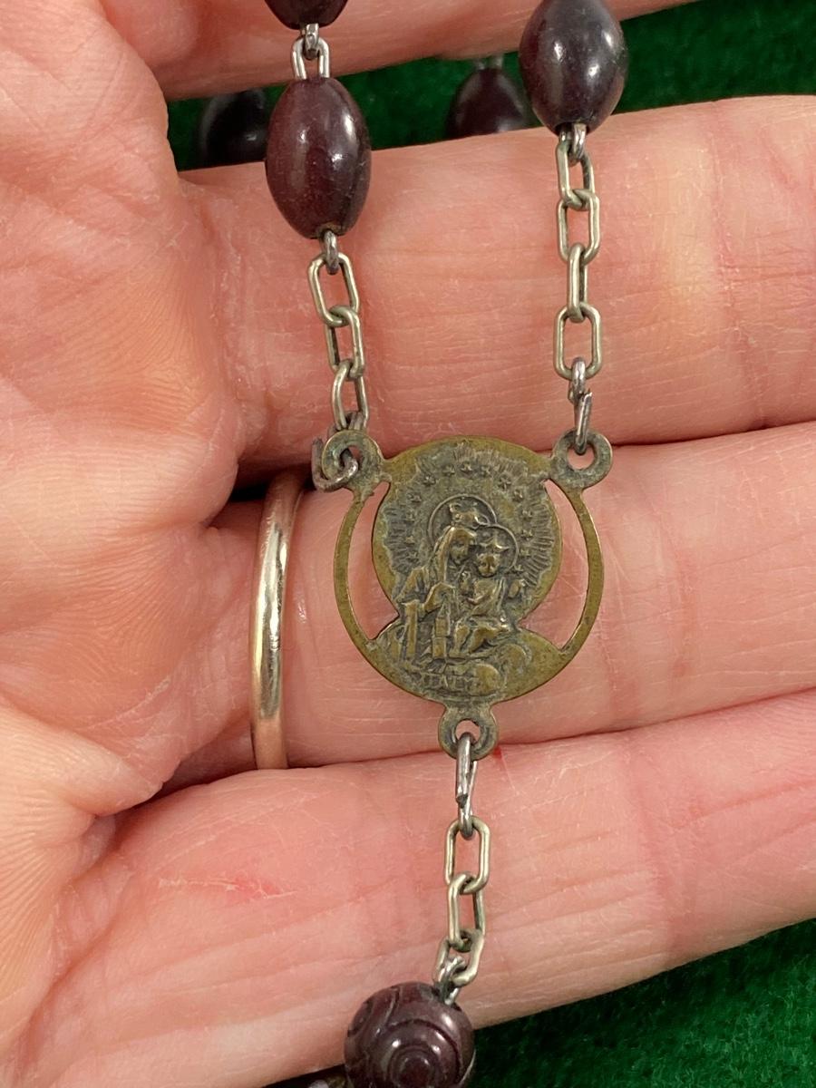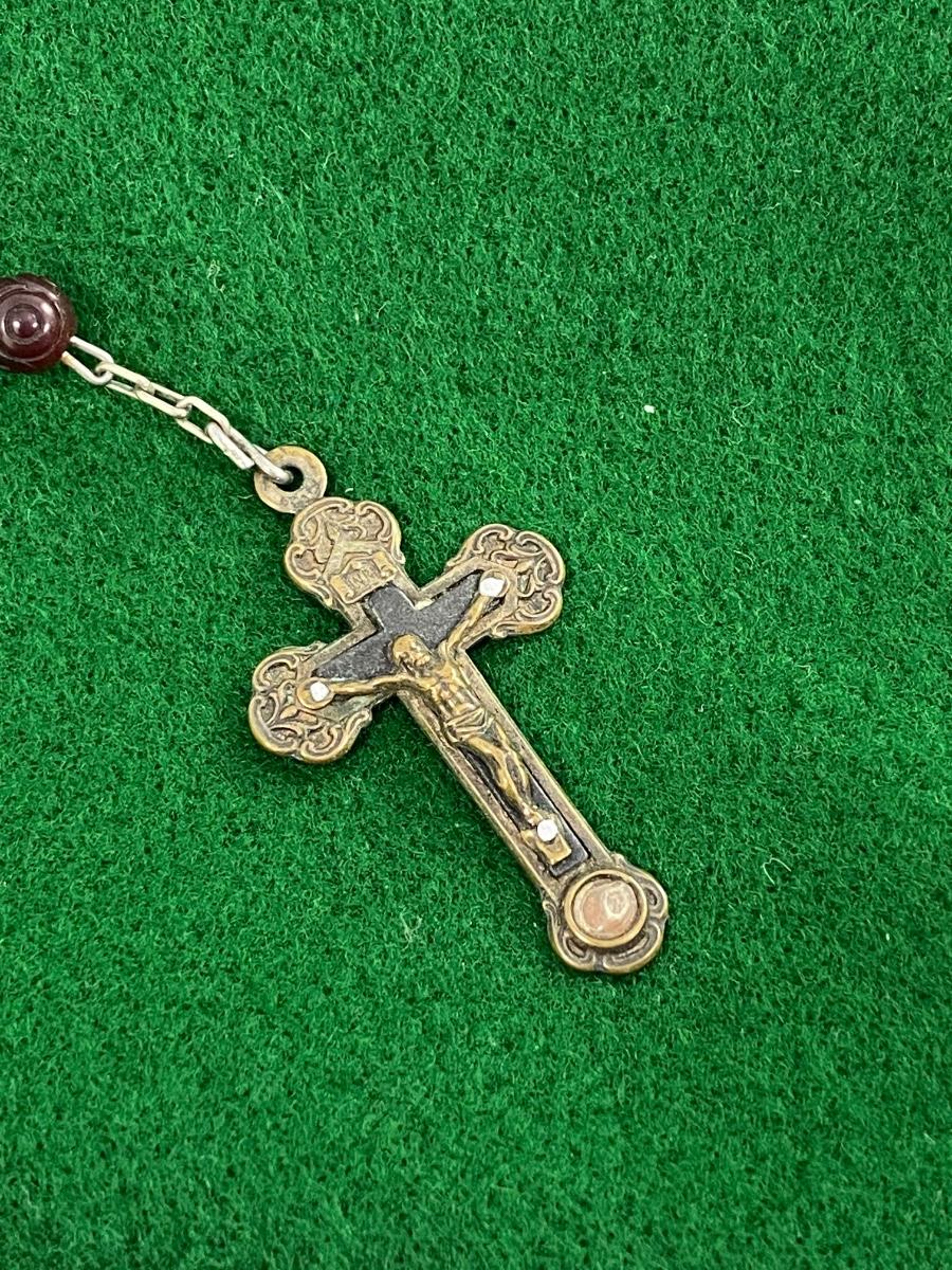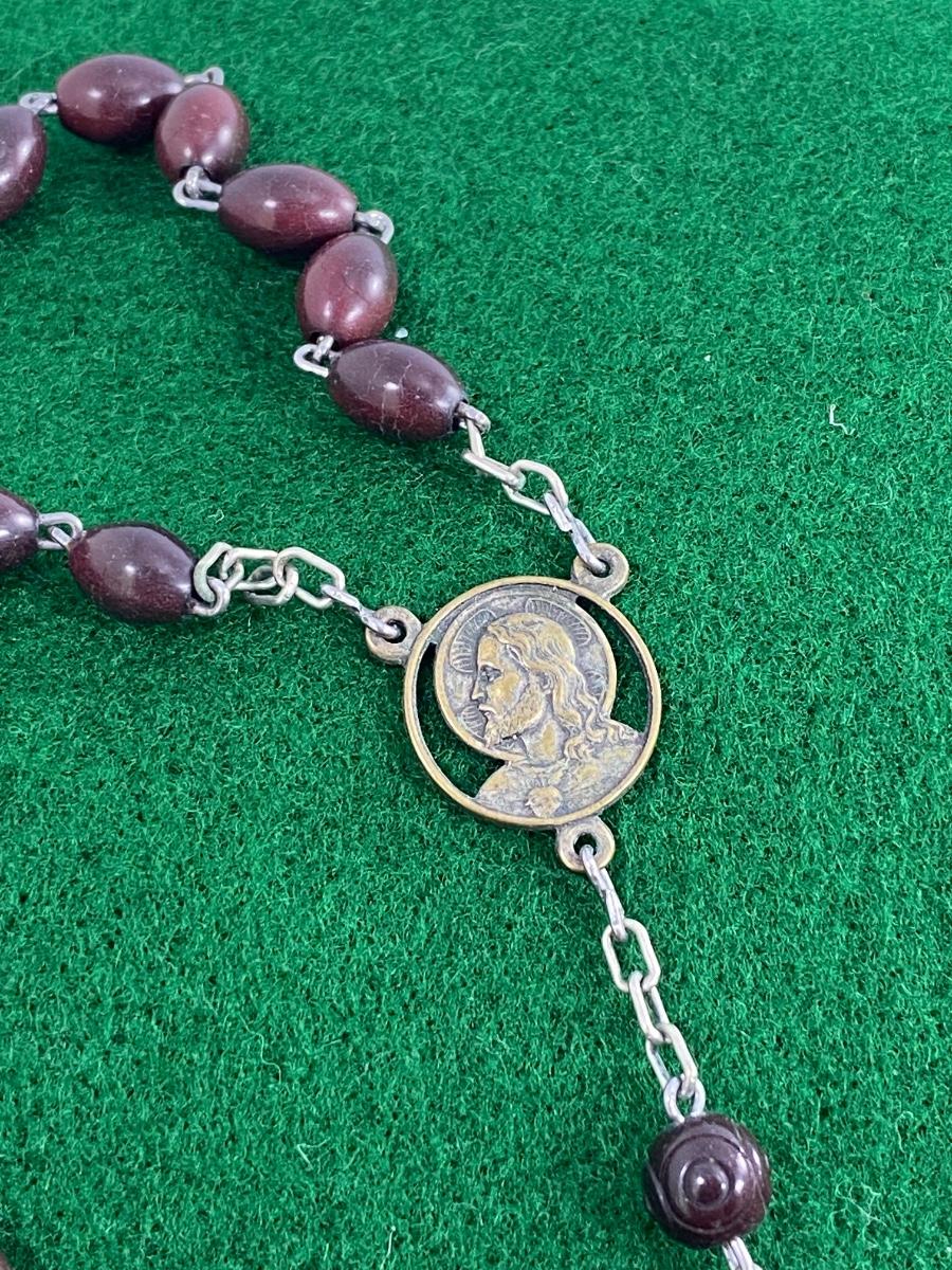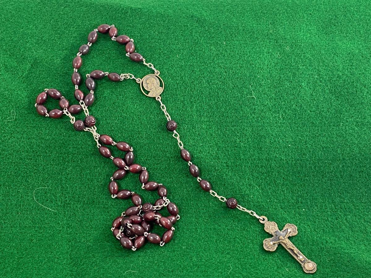 Vintage Brown Bead Rosary with Crucifix. In good condition.