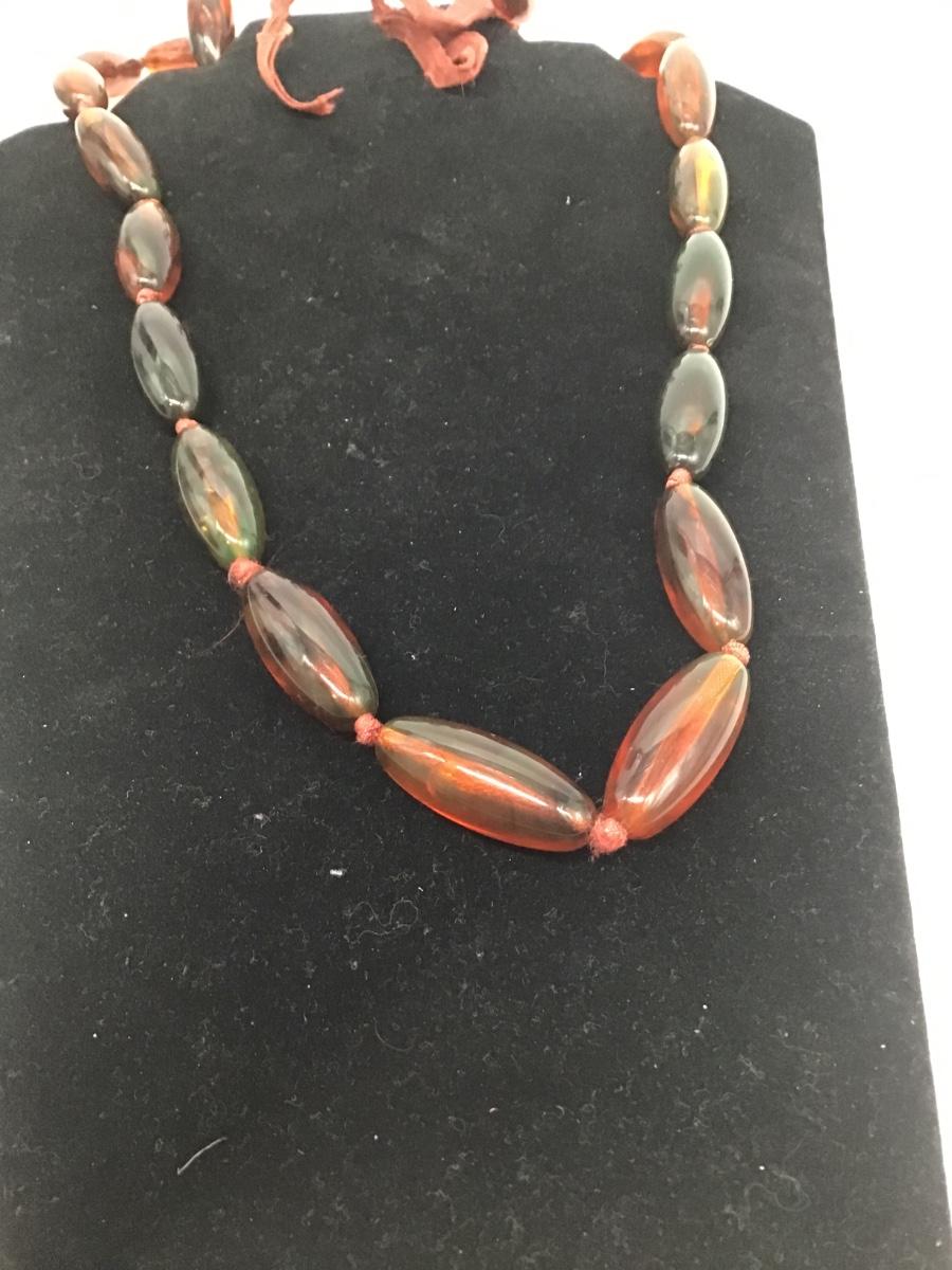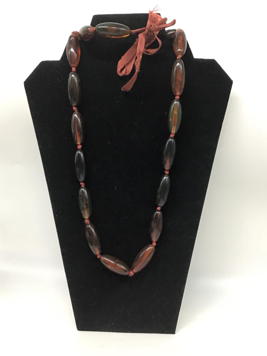 Vintage brown beaded tie necklace
