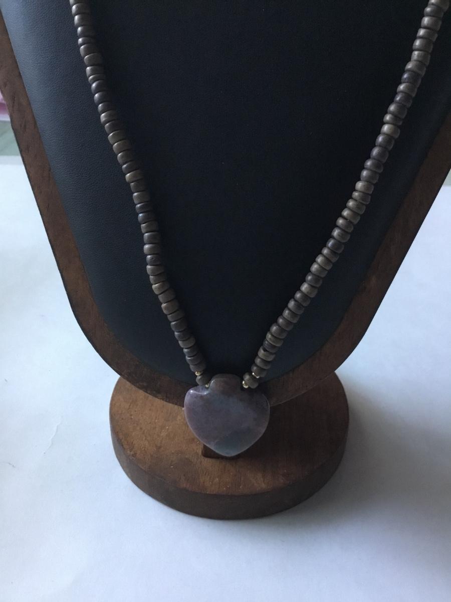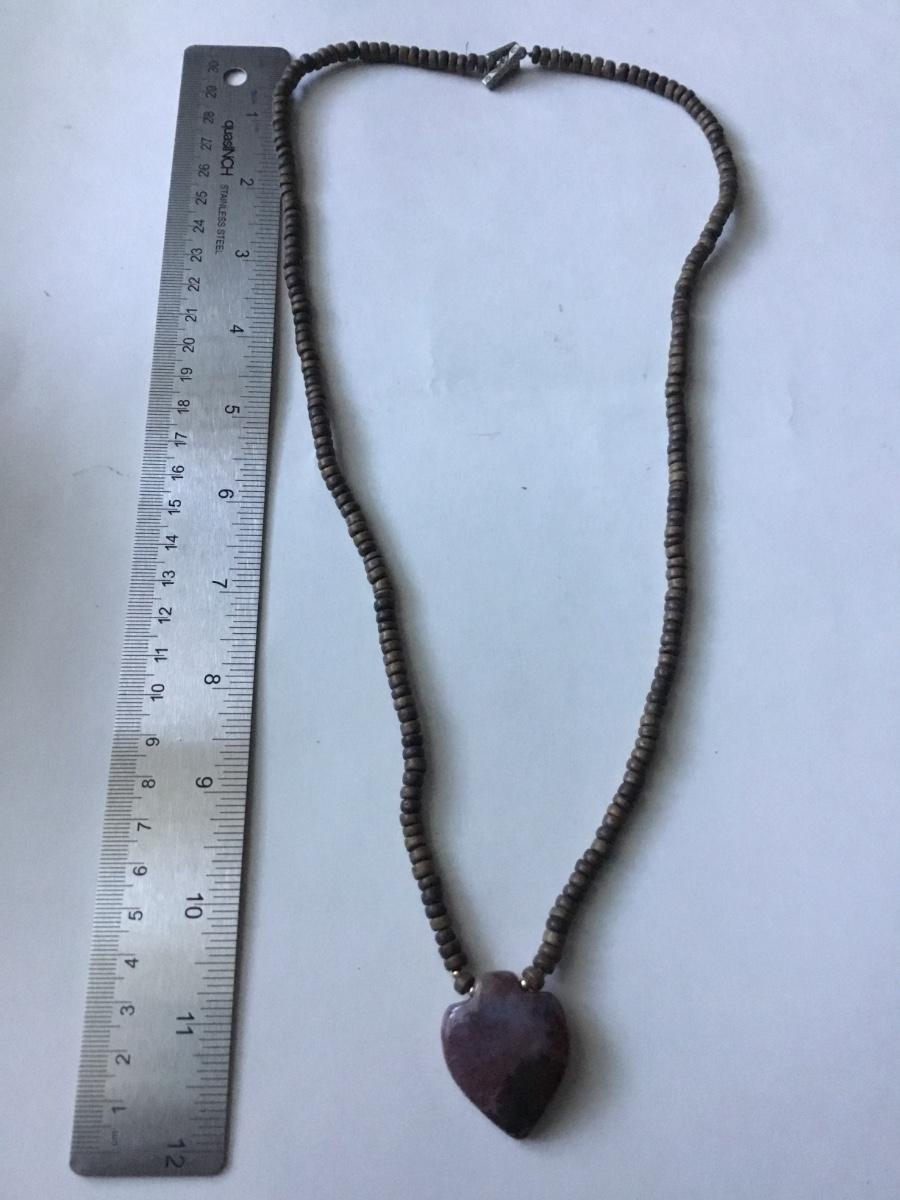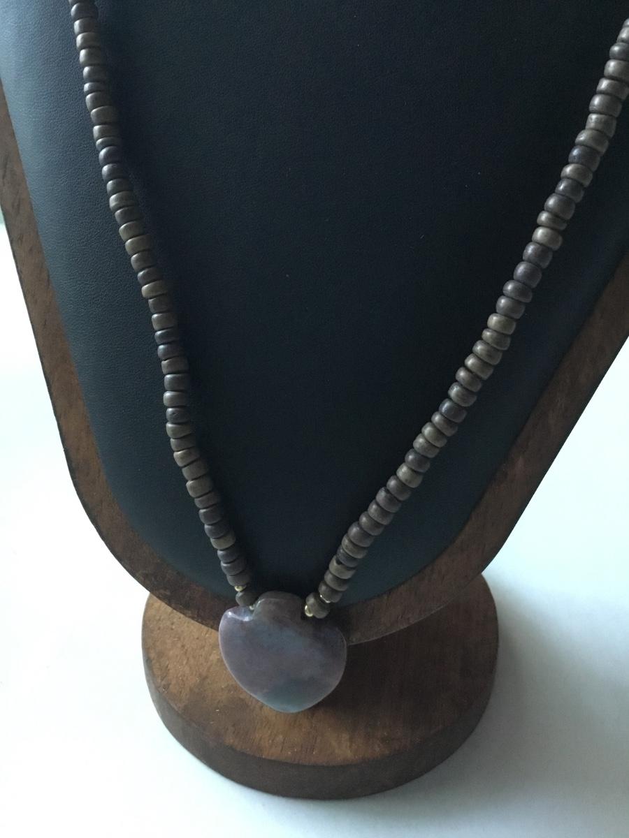 Vintage brown beaded with stone pendant necklace