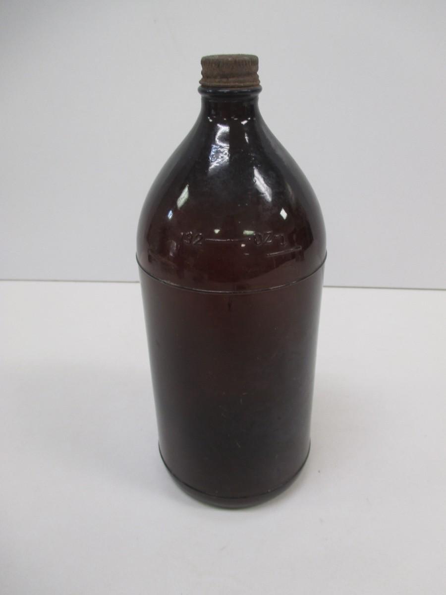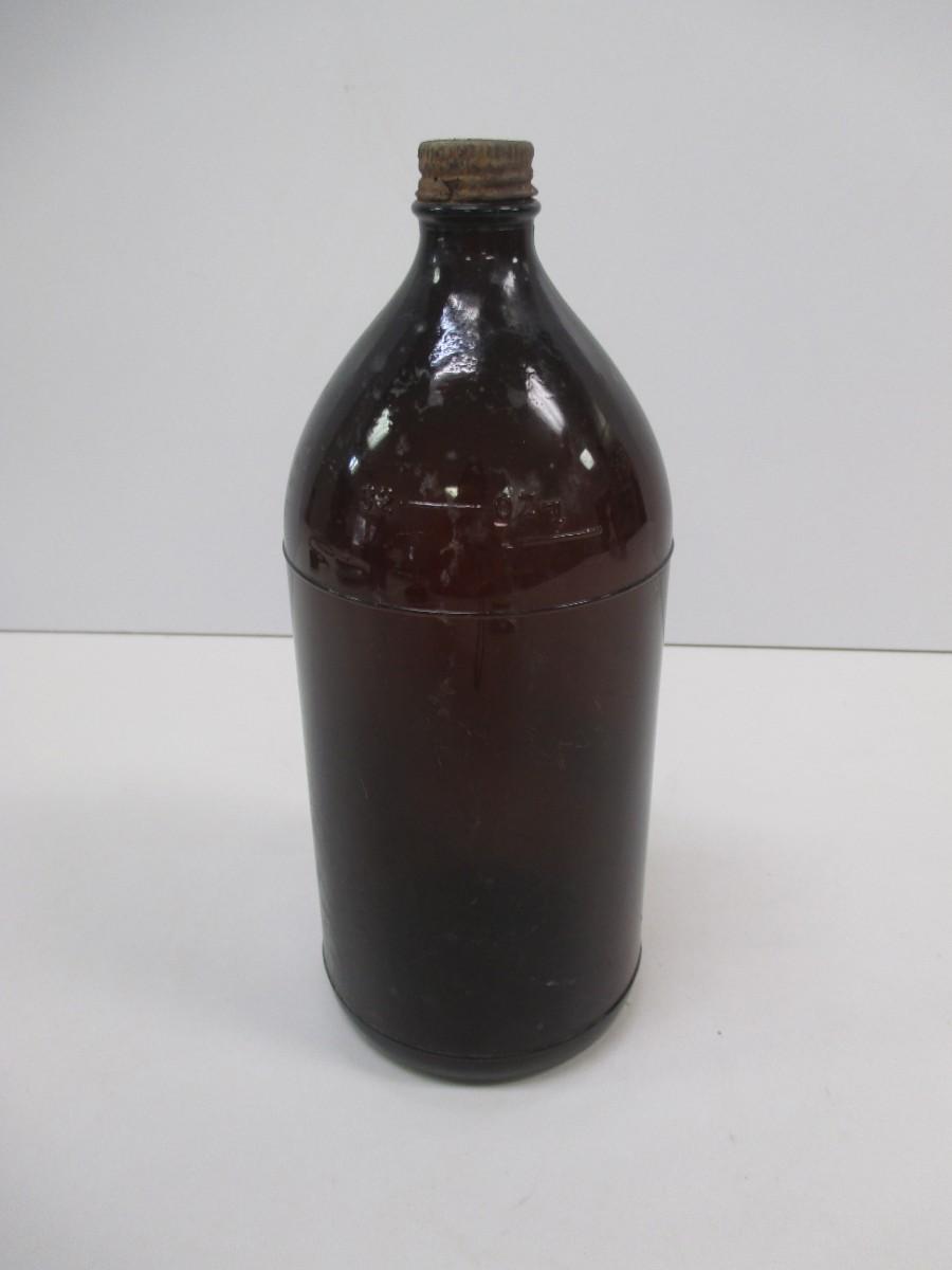 Vintage Brown Bottle With Cap Stamped On The Bottom