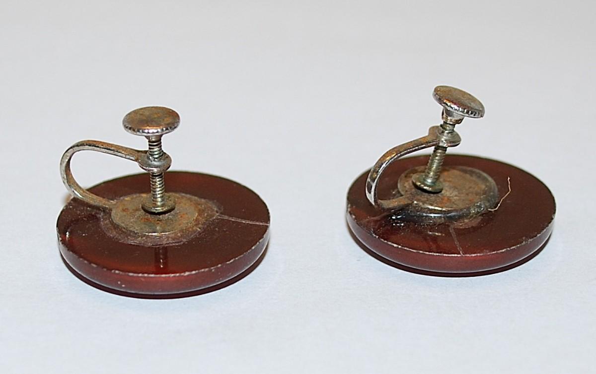 Vintage Brown Circles EARRINGS Set with Silver Tone Screw Clasp
