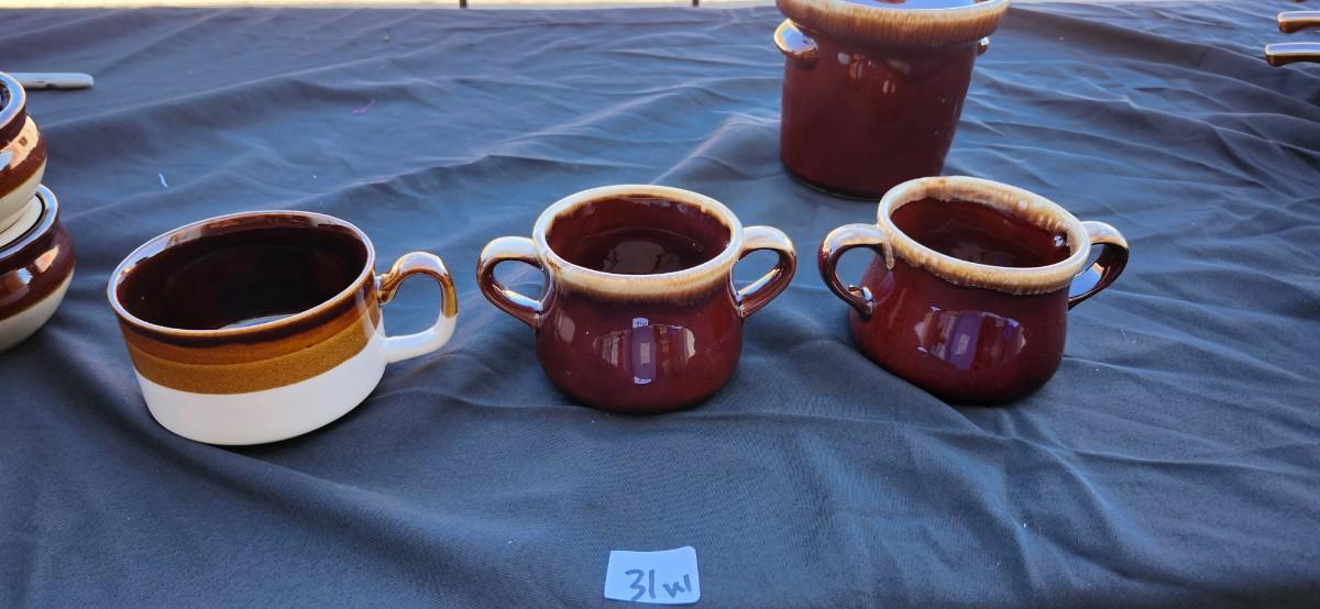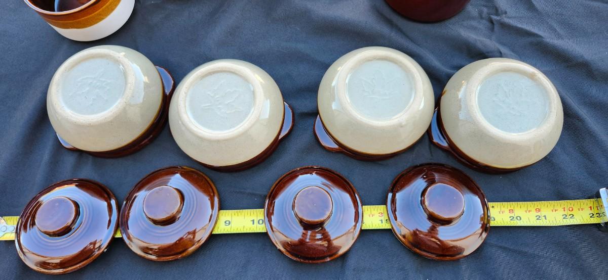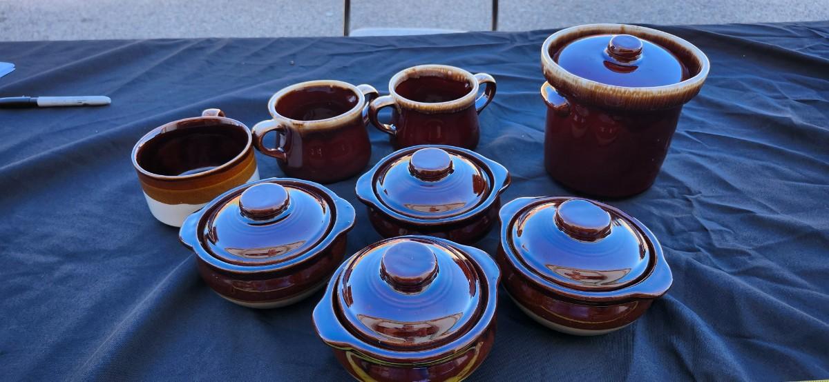 Beautiful Vintage Brown Drip Glaze American Pottery. All pieces are in great condition. Perfect for a classic 1970's motif. See picture for all included, size and condition