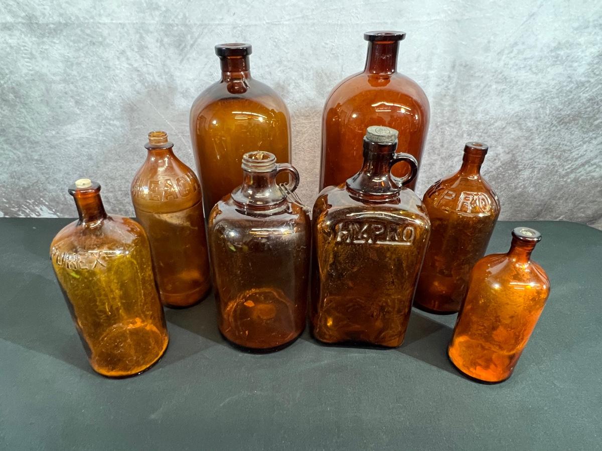 Vintage Brown Glass Bottles