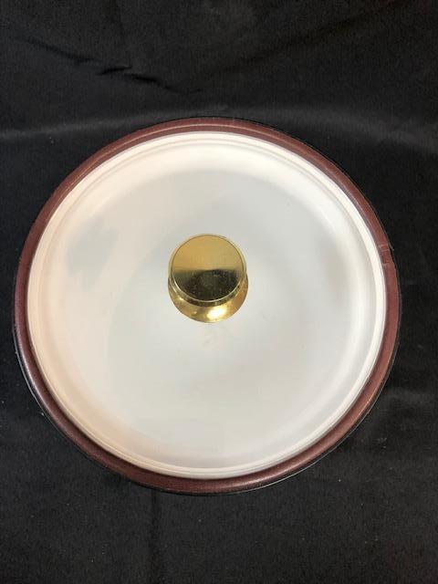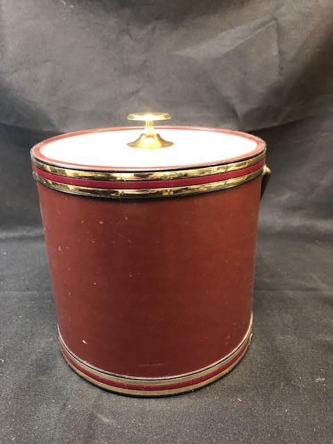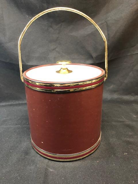 Vintage Ice Bucket. Brown with gold trim. Has lid and handle. Good used condition. Inside is great, a few marks on the outside.