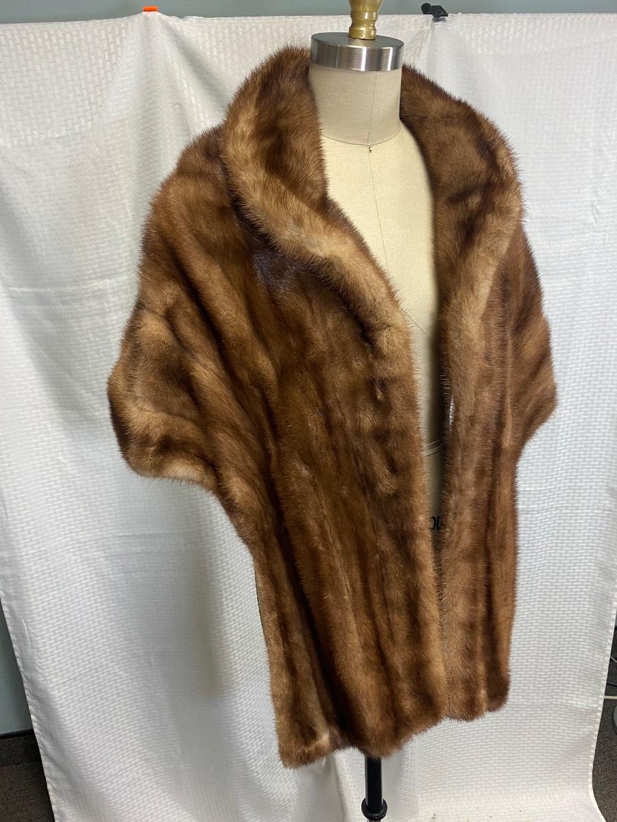 Vintage Brown Mink Stoll Shawl Shoulder Wrap. In good condition. No branding inside but does have inside pockets. Fur is in good vintage condition.