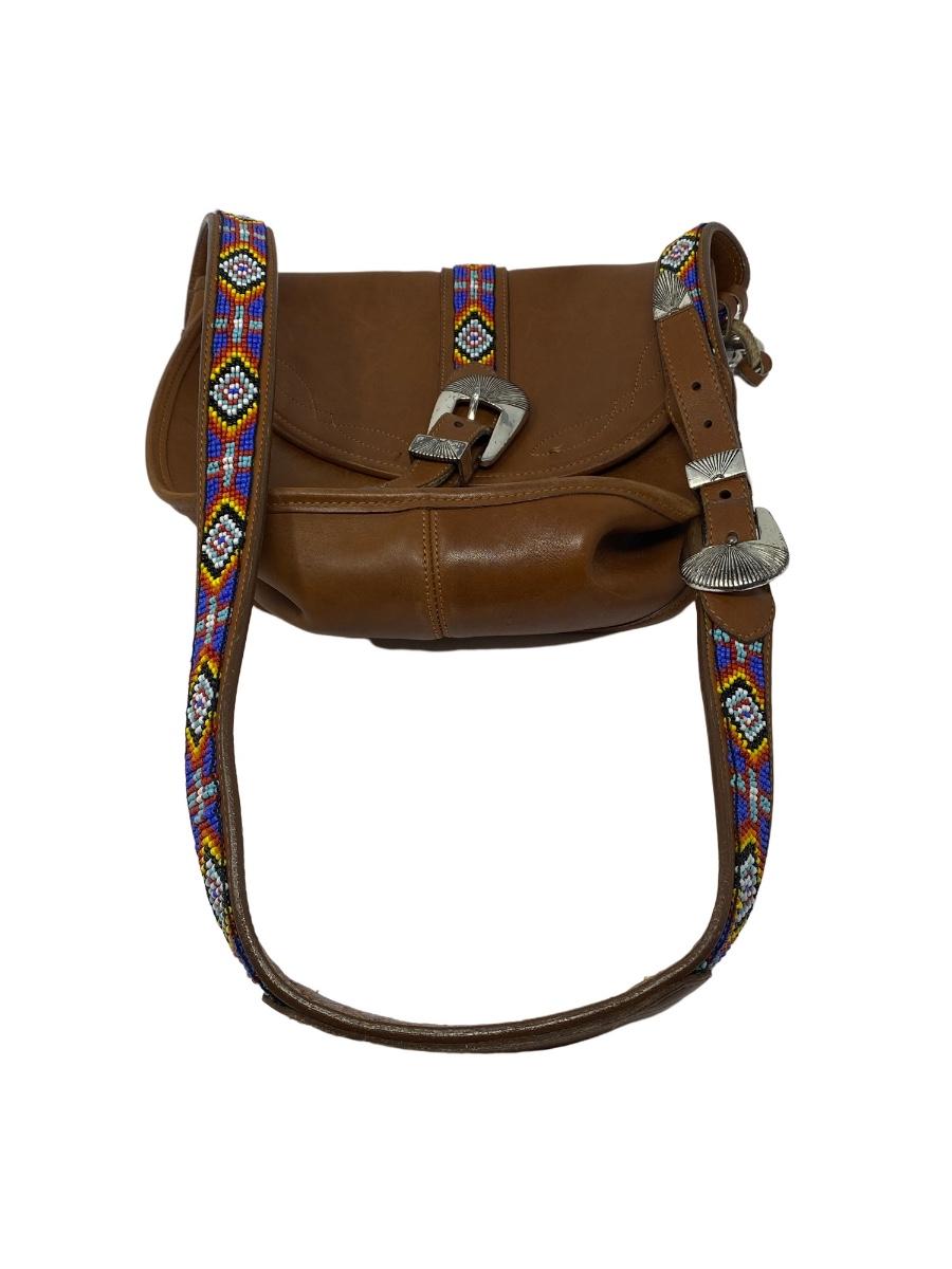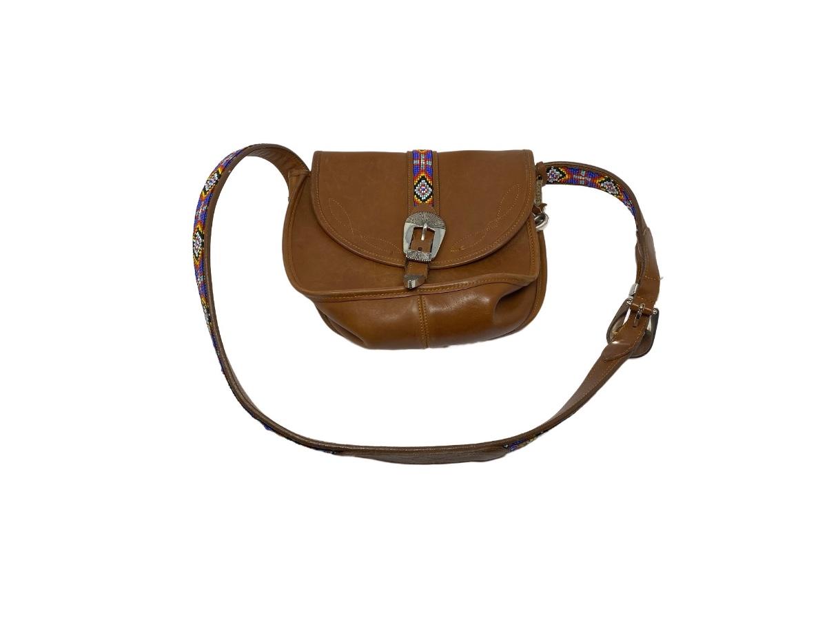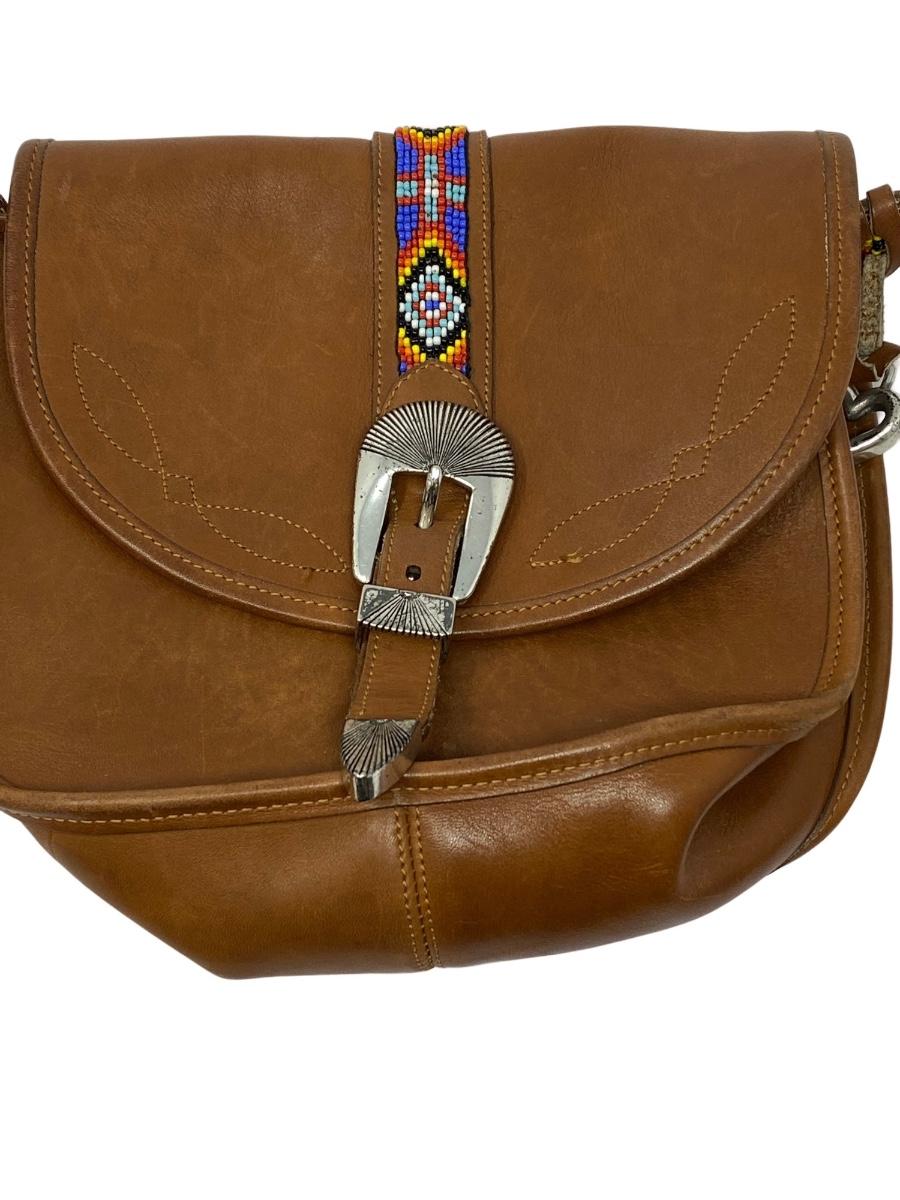 Vintage Brown Shoulder Bag with Beaded Strap