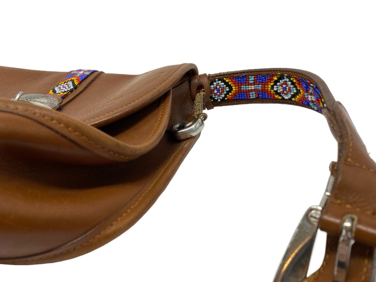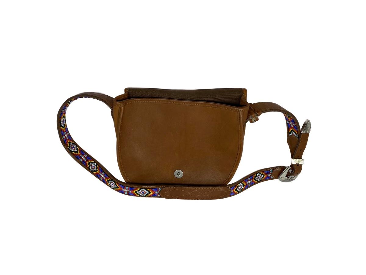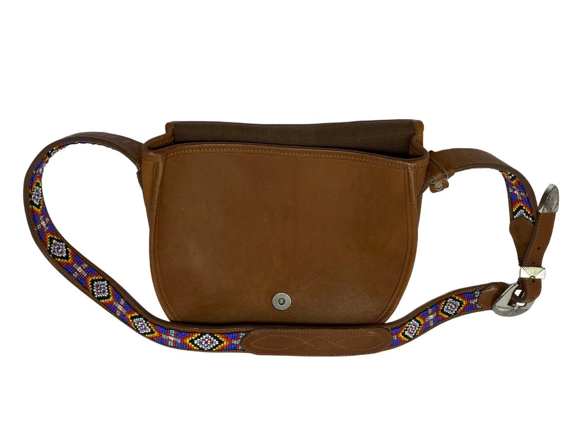 Vintage Brown Shoulder Bag with Beaded Strap