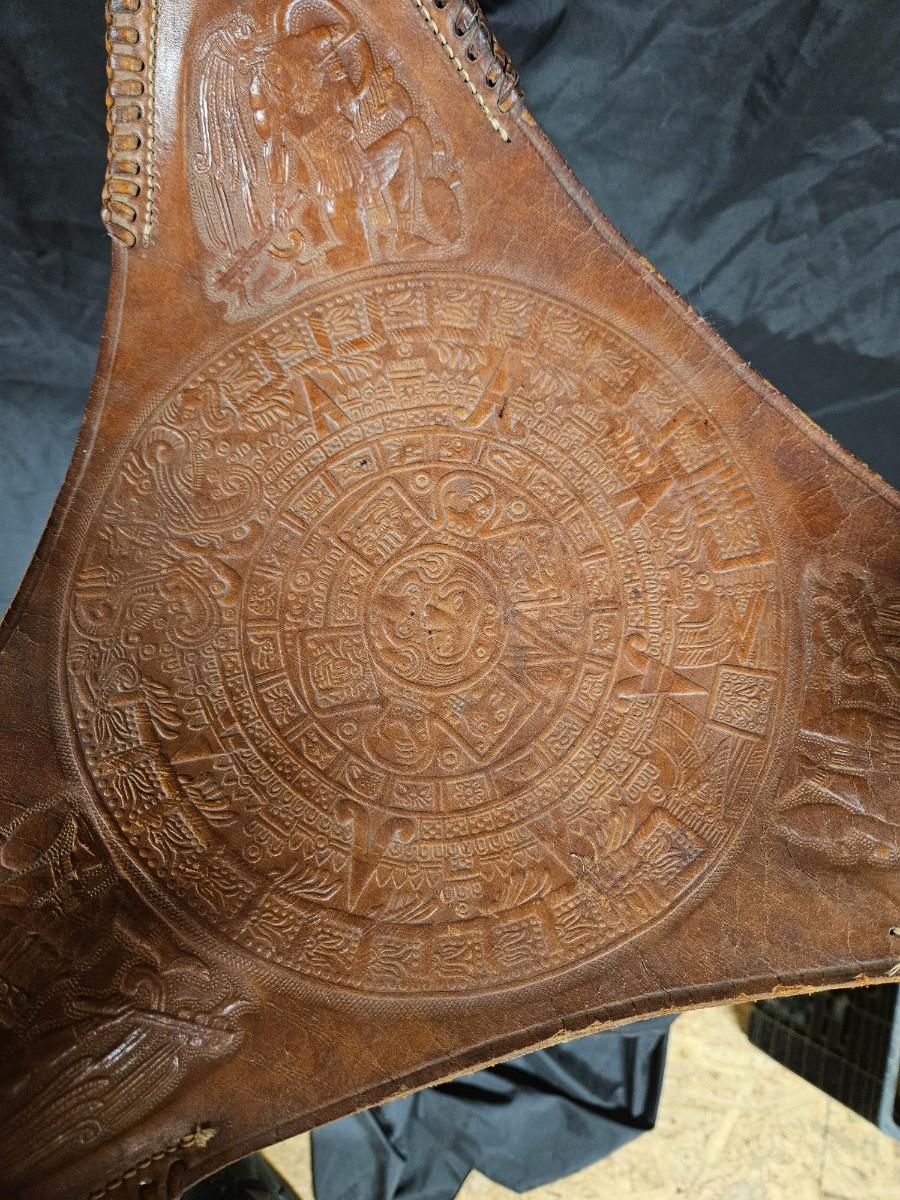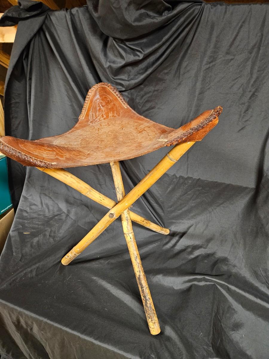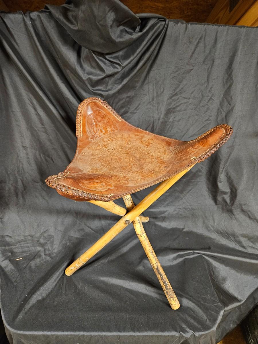 Vintage Brown Tribal Leather Woven Tripod Stool
