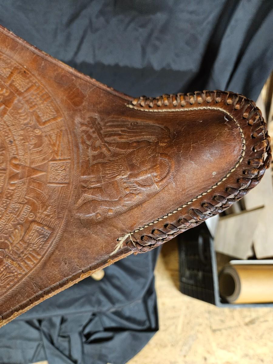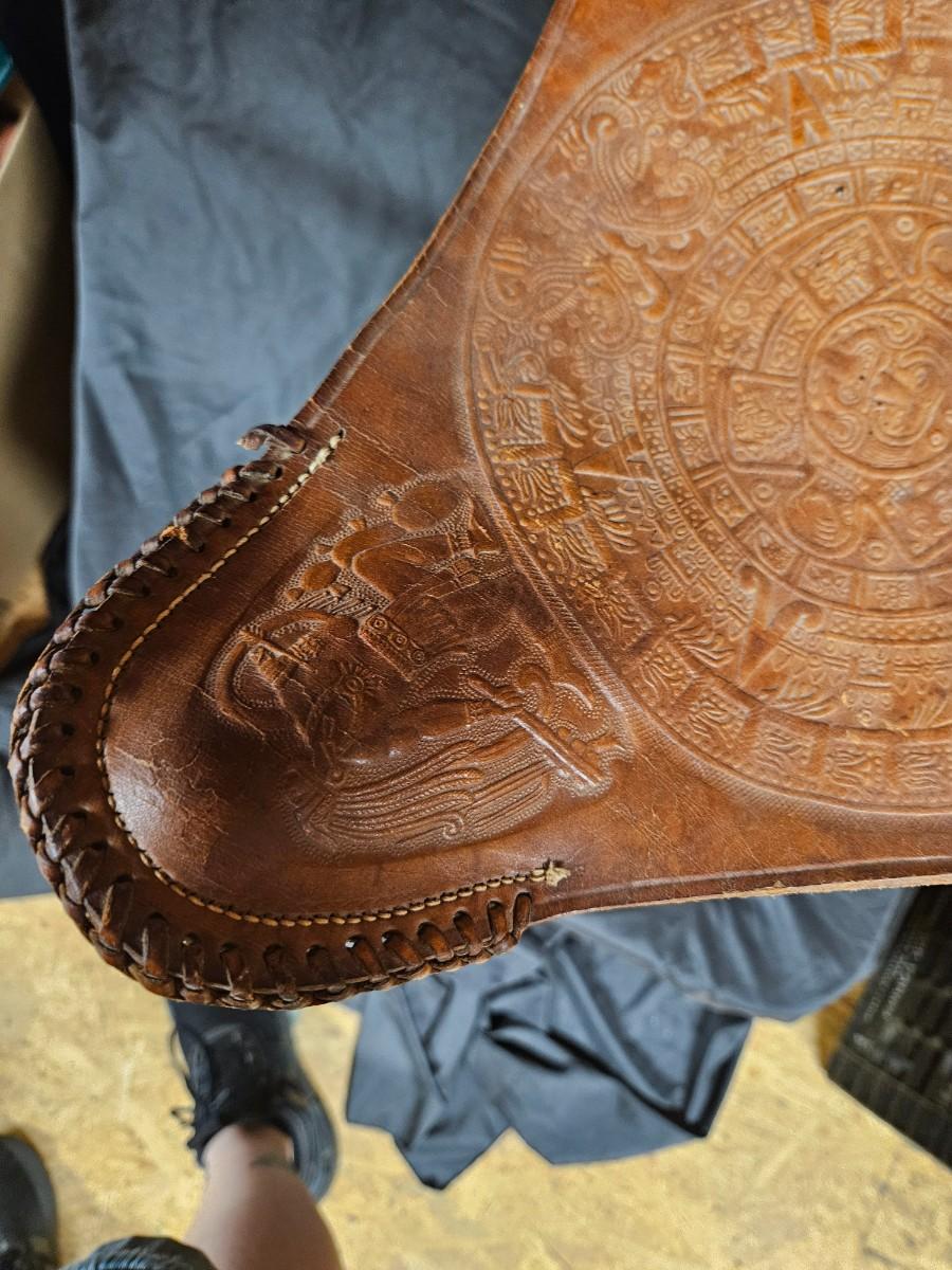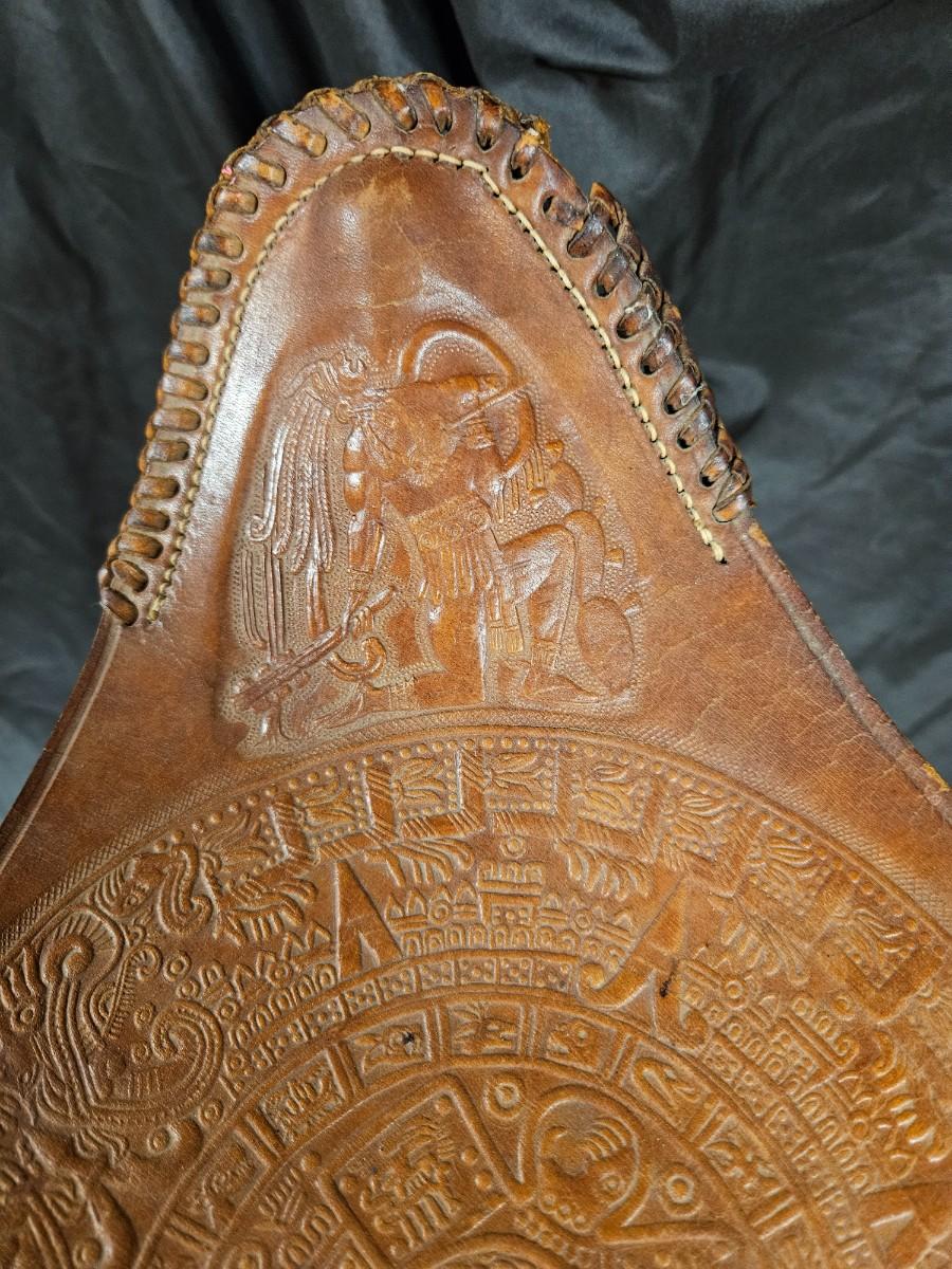 Vintage Brown Tribal Leather Woven Tripod Stool