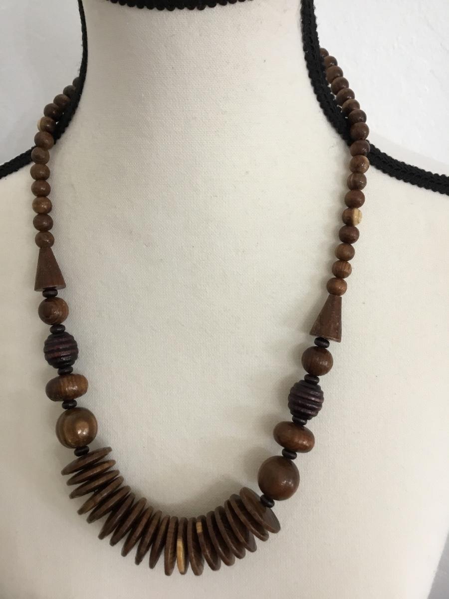 Vintage brown wooden statement necklace