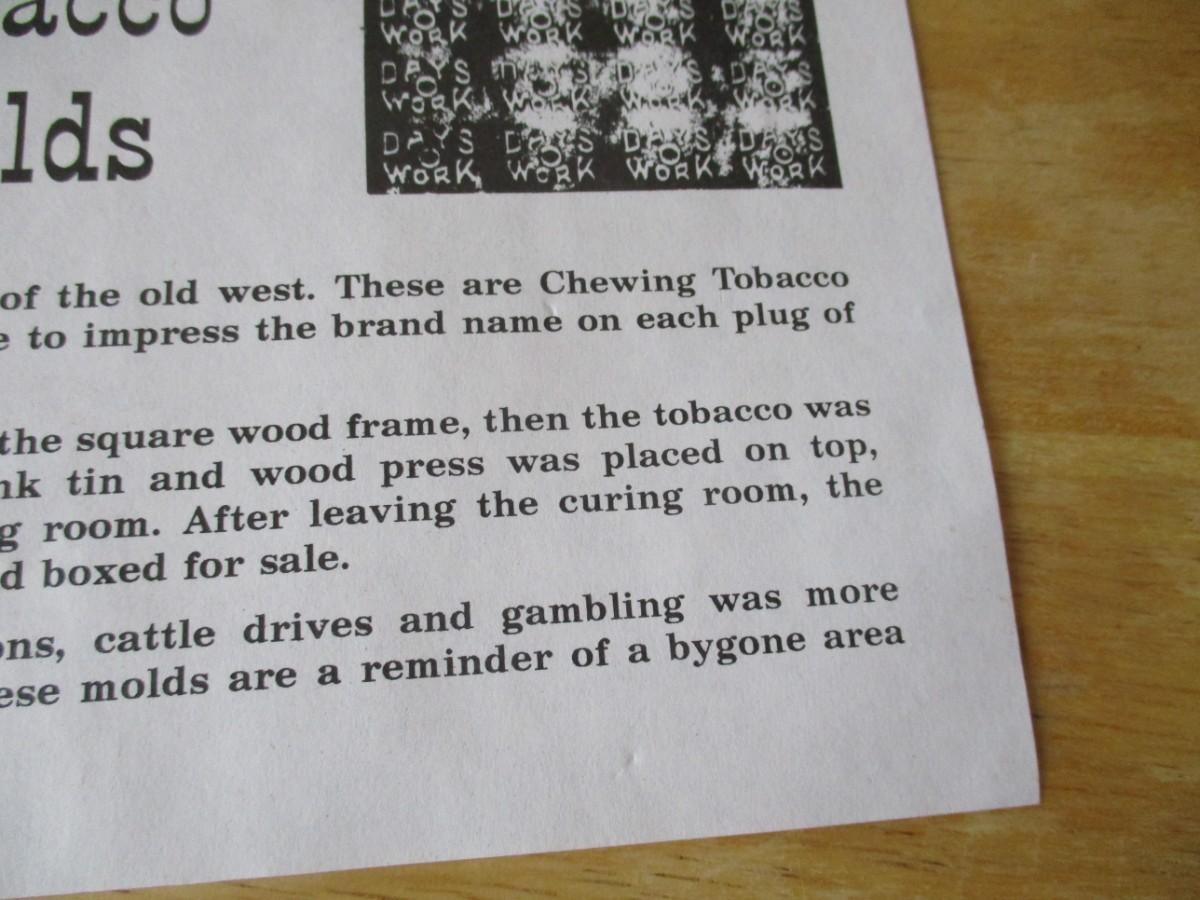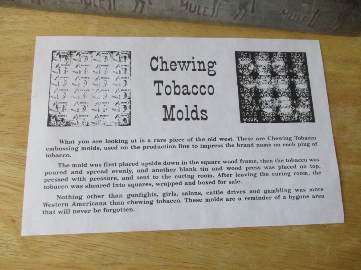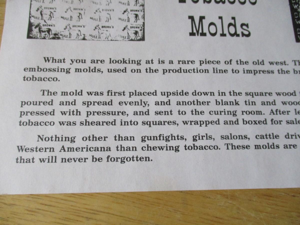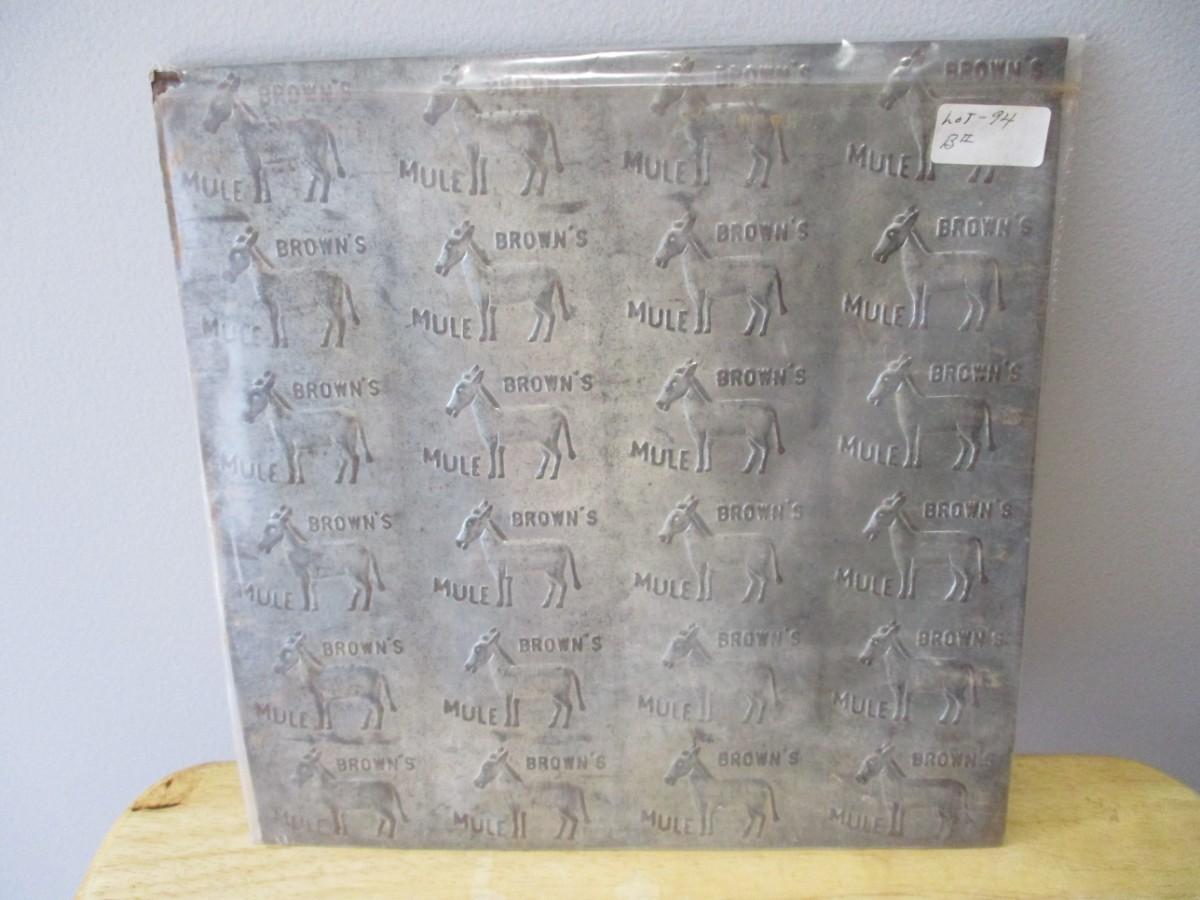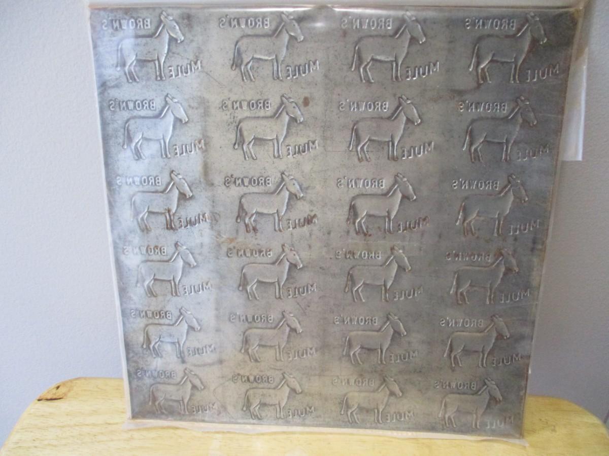 Vintage Brown's Mule Chewing Tobacco Metal Embossed Stamp Mold Tin Sheet