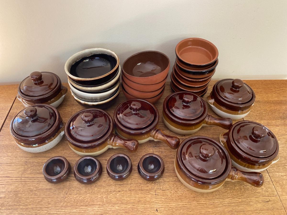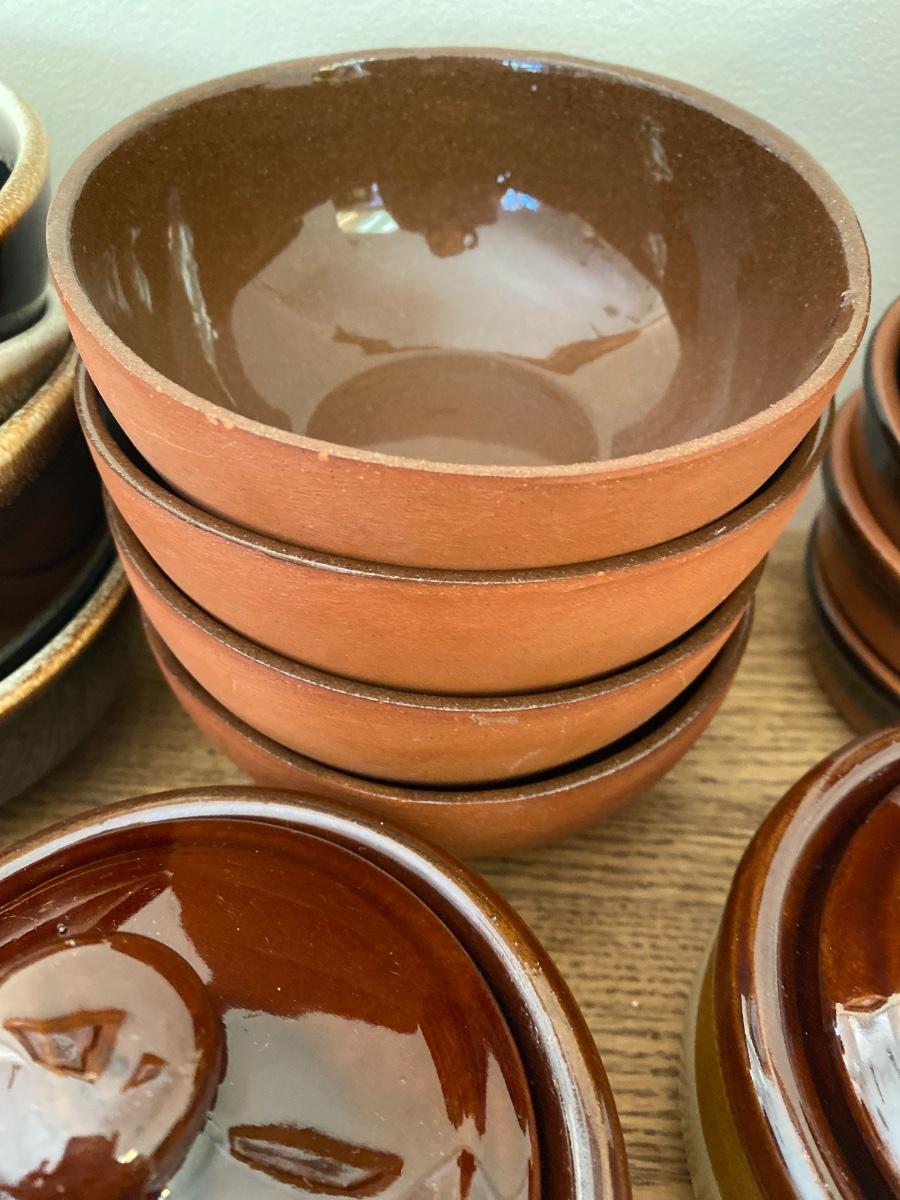 Includes MOIRA Stoneware, Gailstyn-Sutton small covered soup bowls and small terracotta bowls