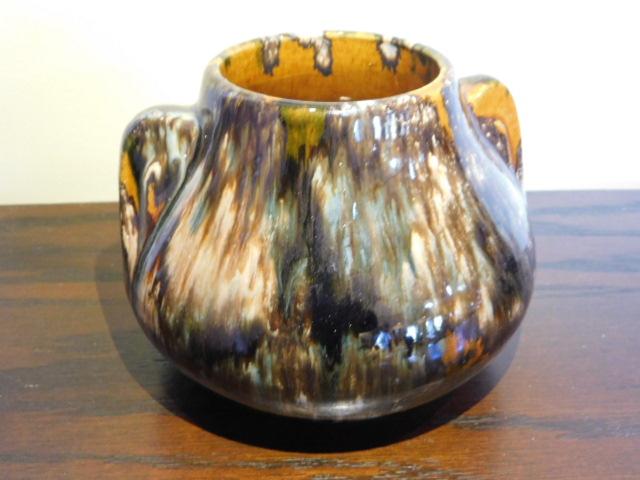 1st Choice of 2: Vintage Brush McCoy or Weller Handled Pottery Bowl 5" gorgeous colors and shows no flaws