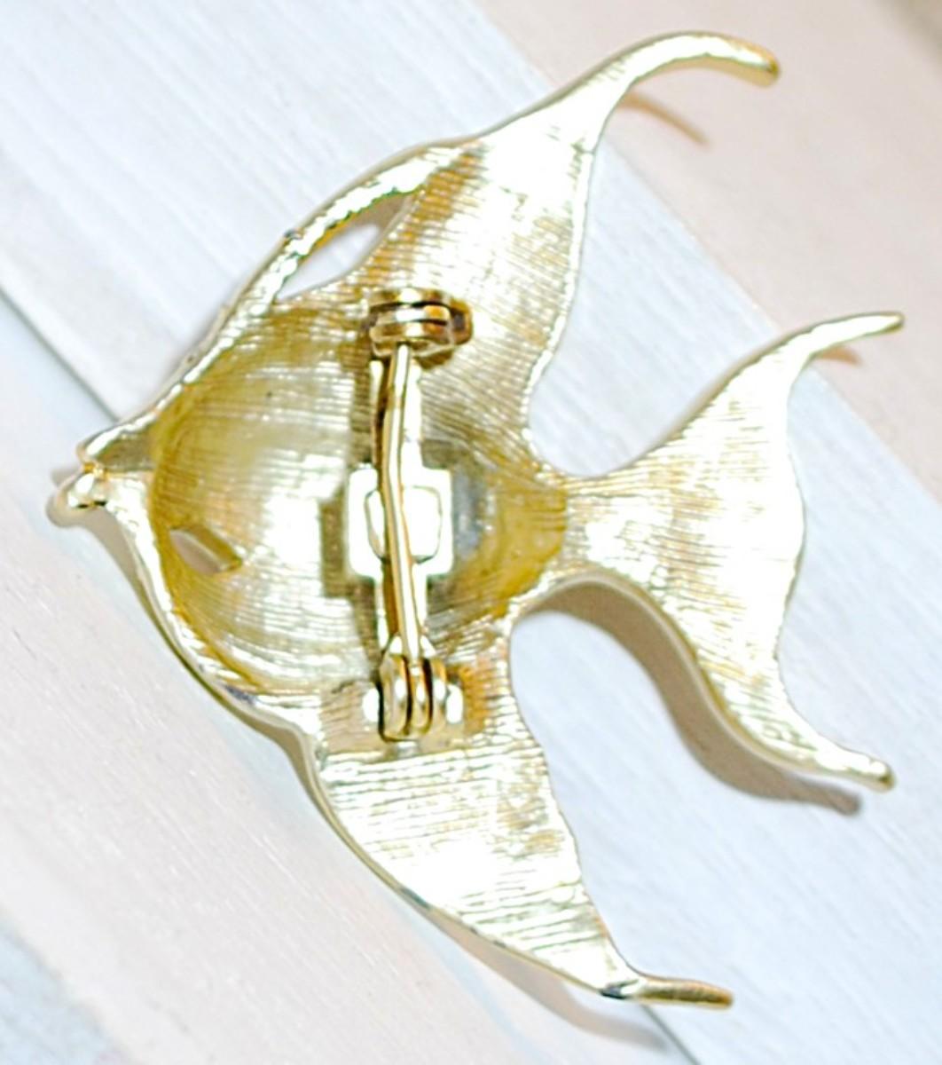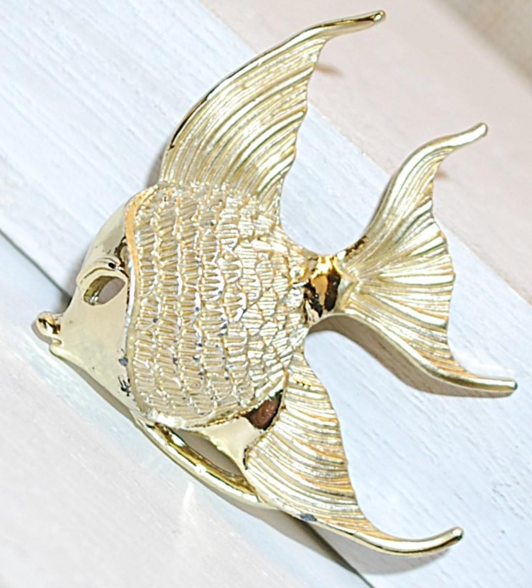 VINTAGE Brushed Gold Tone Puffy Angelfish BROOCH (1¾" x 1¾")