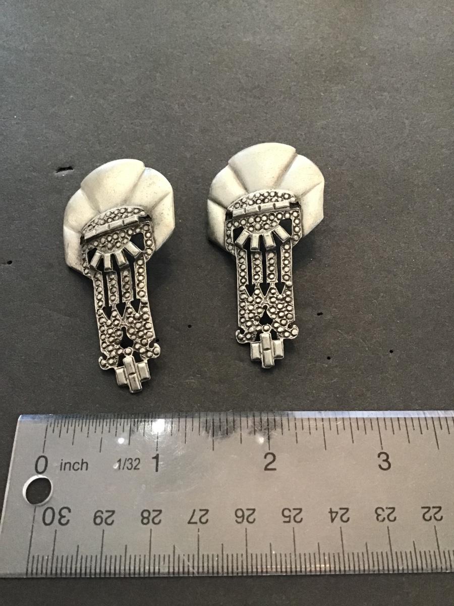 Vintage brushed, silver tone earrings. Please see attached photos.