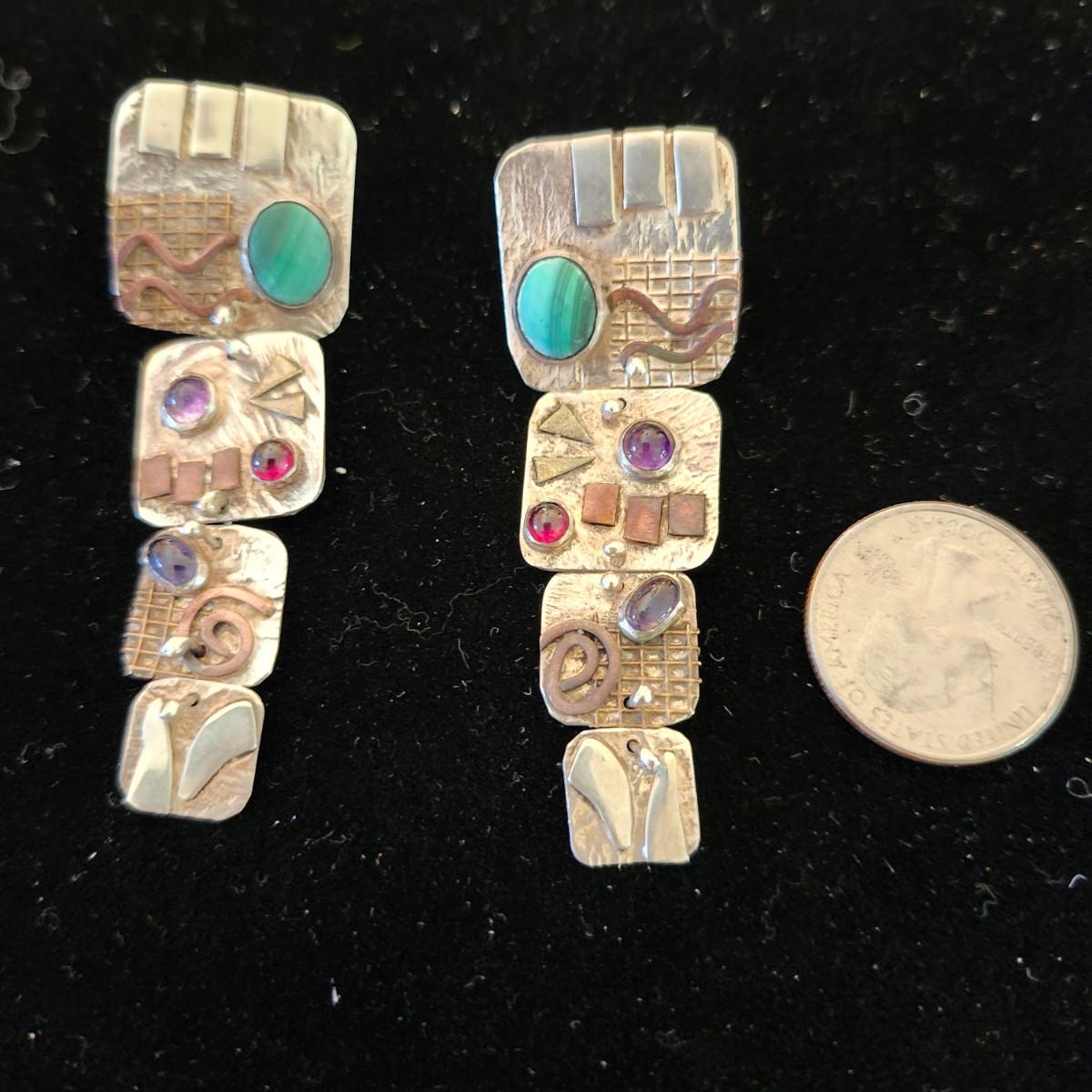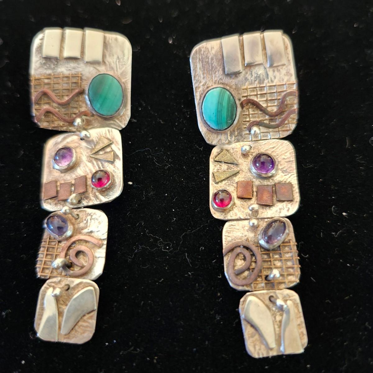 Mixed metal with semi precious stones, pierced earrings. Very good condition