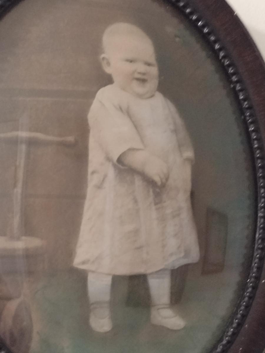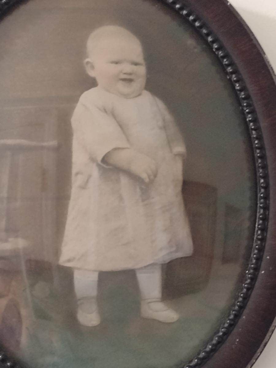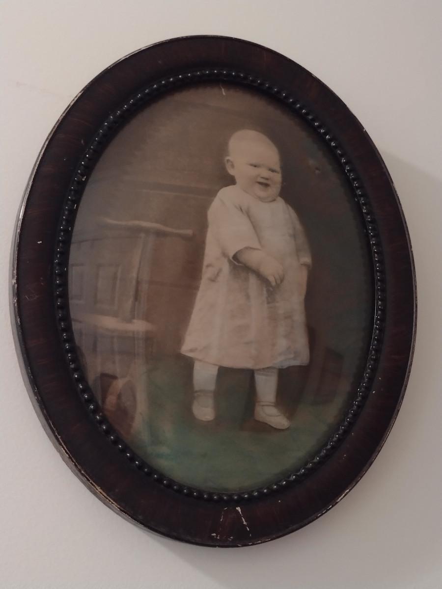 Vintage Bubble Glass Frame with Child's Photograph- Approx 13" x 16"