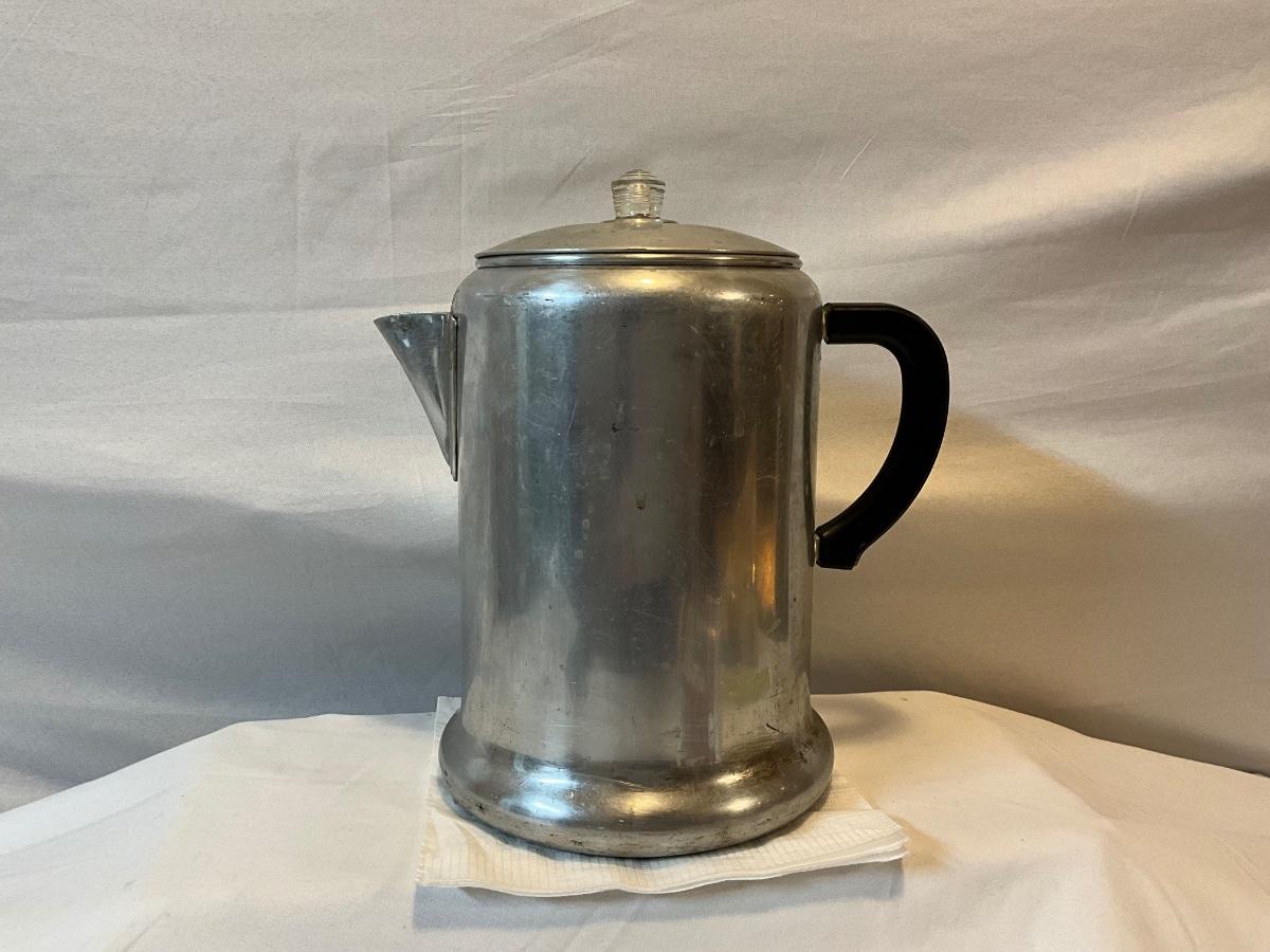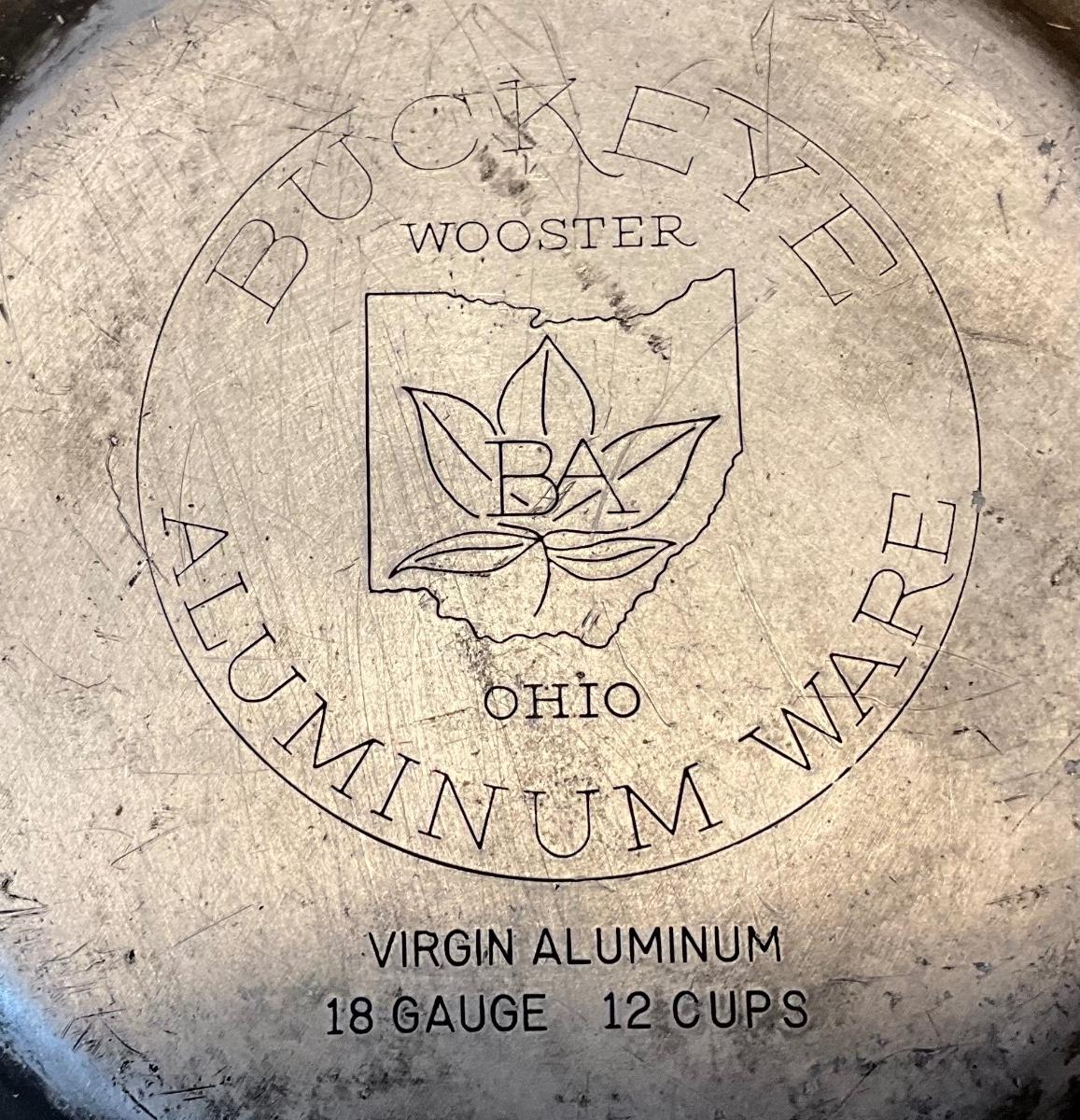 Vintage Buckeye Ohio 12 cup aluminum ware coffee pot stacked glass percolator